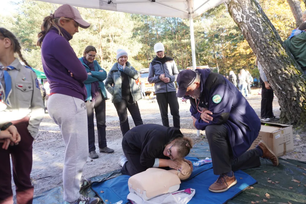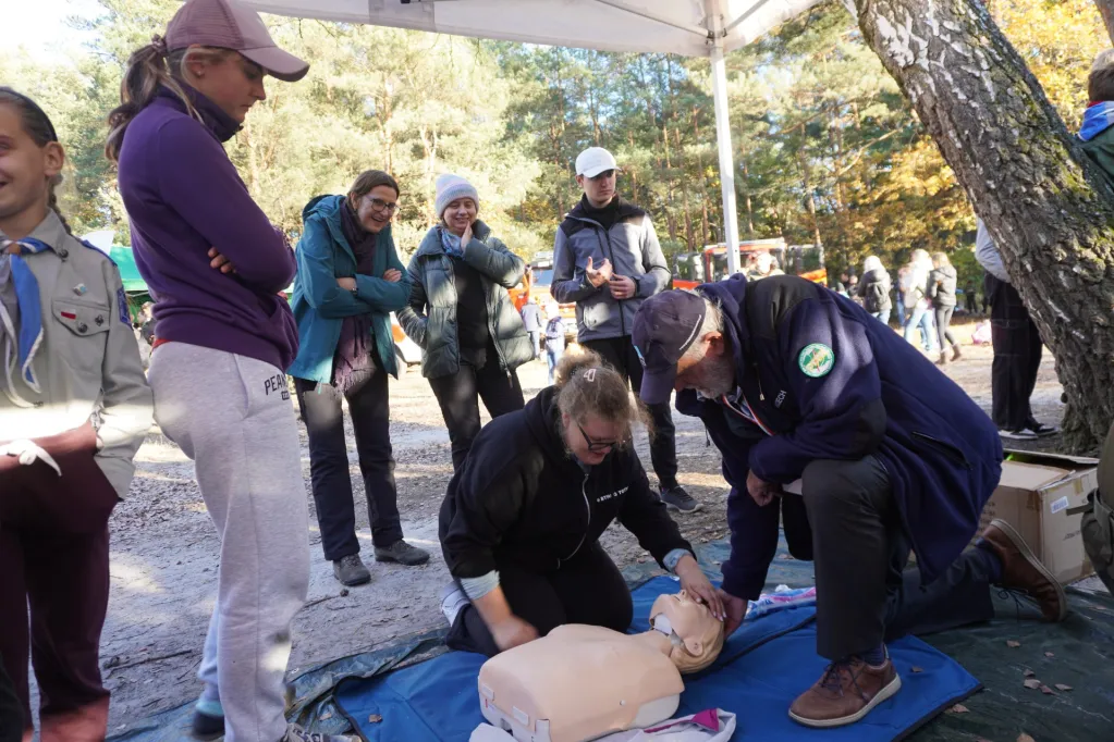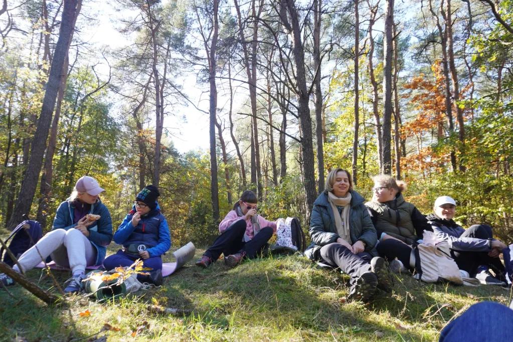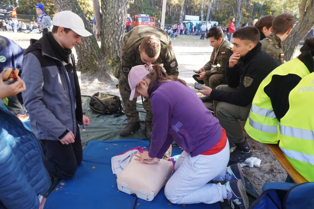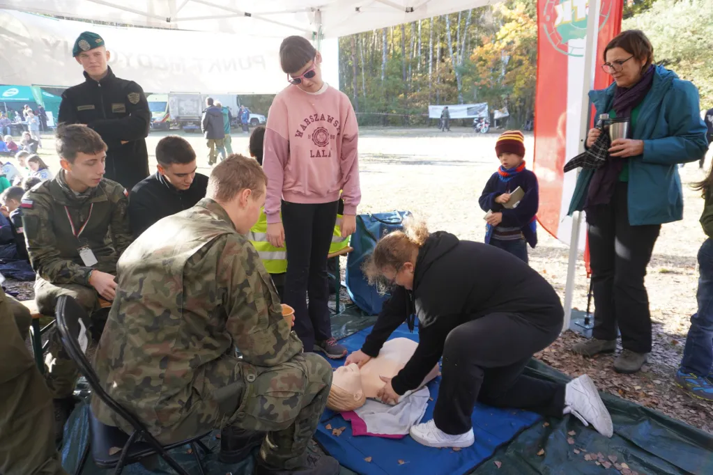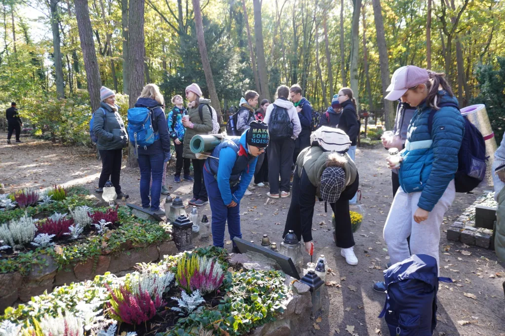19 października delegacja uczniów naszej szkoły – członków Szkolnego Koła Krajoznawczo – Turystycznego PTTK wzięła udział w 64 Centralnym Zlocie Młodzieży „Palmiry 2024”. Wędrowaliśmy ścieżkami puszczy kampinoskiej z Lasek (gdzie oddaliśmy hołd poległym w czasie II wojny światowej na cmentarzu wojennym i zwiedziliśmy cmentarz zakładu dla niewidomych), drogą łączniczek AK przez Sieraków do polany „Pociecha”. Tu, przy ognisku turystycznym upiekliśmy kiełbaski i zjedliśmy grochówkę wojskową. Mieliśmy też inne atrakcje – uczyliśmy się udzielania pierwszej pomocy, oglądaliśmy broń, „na własnej skórze” przekonaliśmy się, jak ciężki jest ubiór i uzbrojenie spadochroniarzy. Mieliśmy też okazję wejść do wozu strażackiego i przymierzyć hełm strażacki. Potem poszliśmy do pomnika „Jerzyków”, gdzie zapaliliśmy znicze. Ostatnim etapem naszej wędrówki był cmentarz w Palmirach. Tu odbyła się centralna uroczystość poświęcona poległym w czasie wojny – przede wszystkim powstańcom warszawskim.