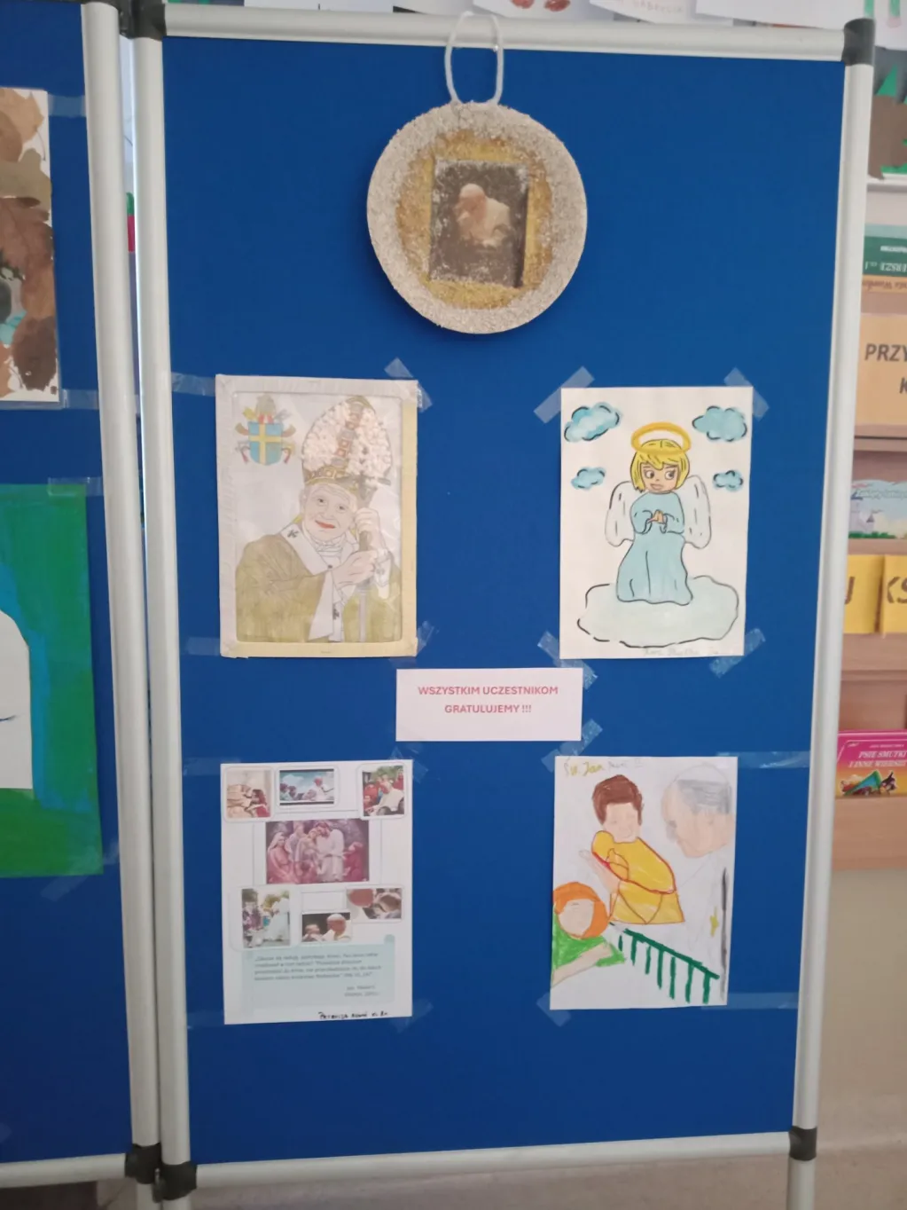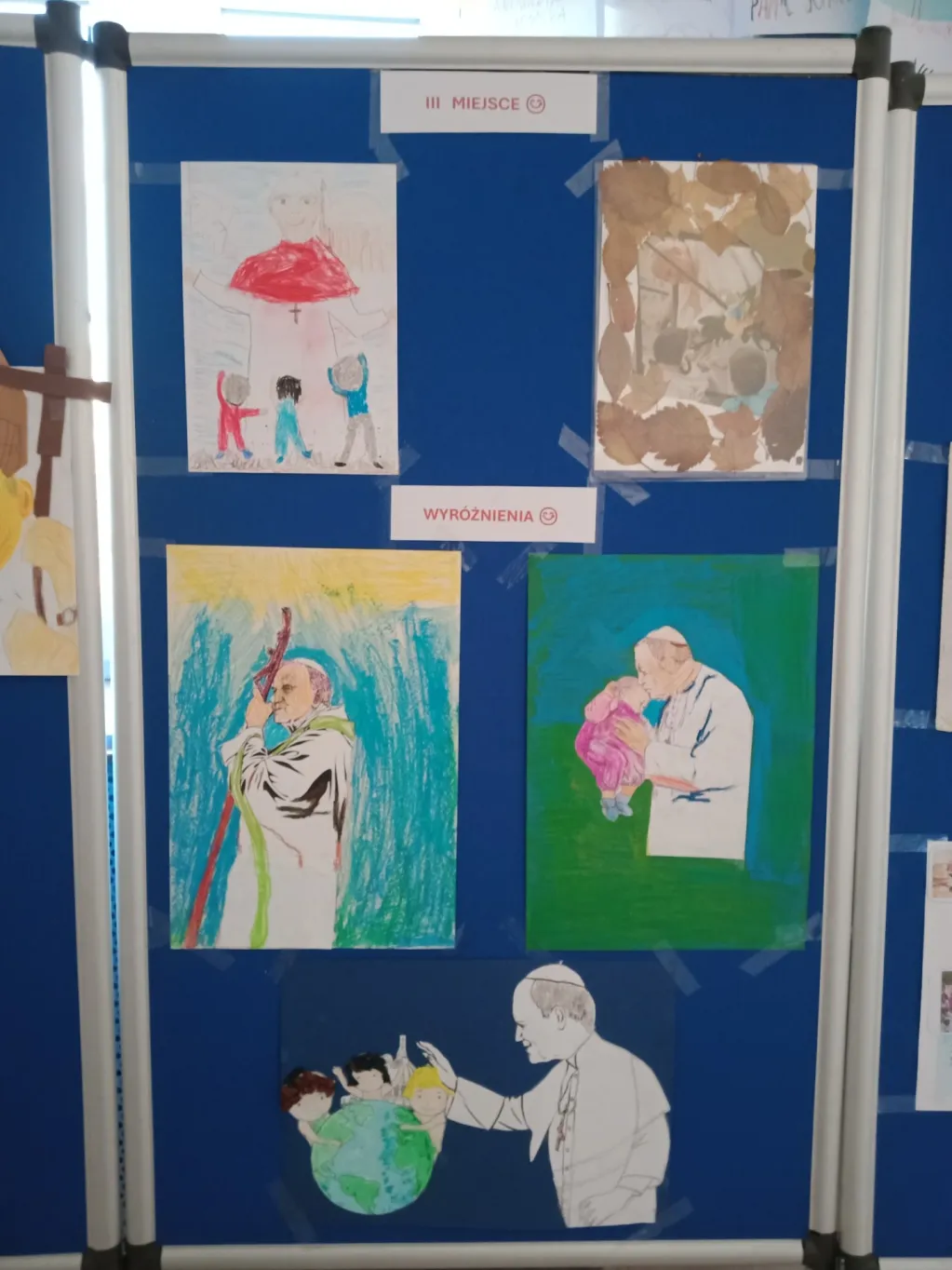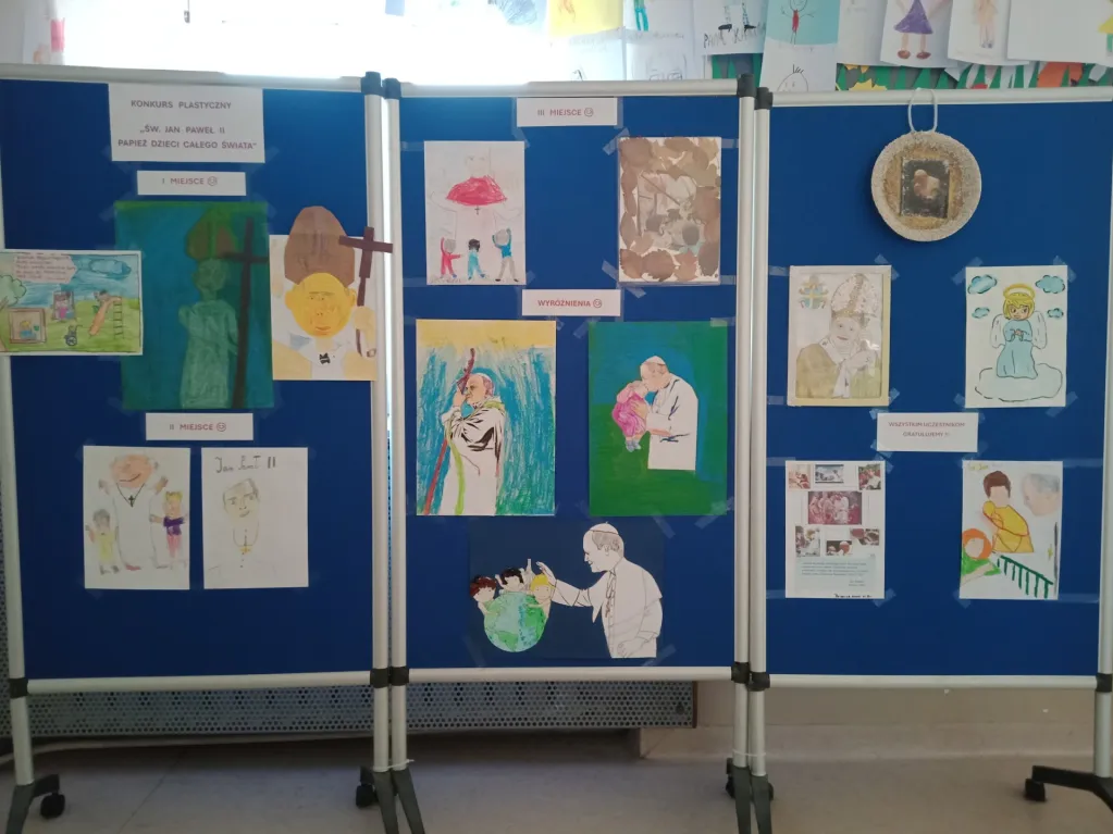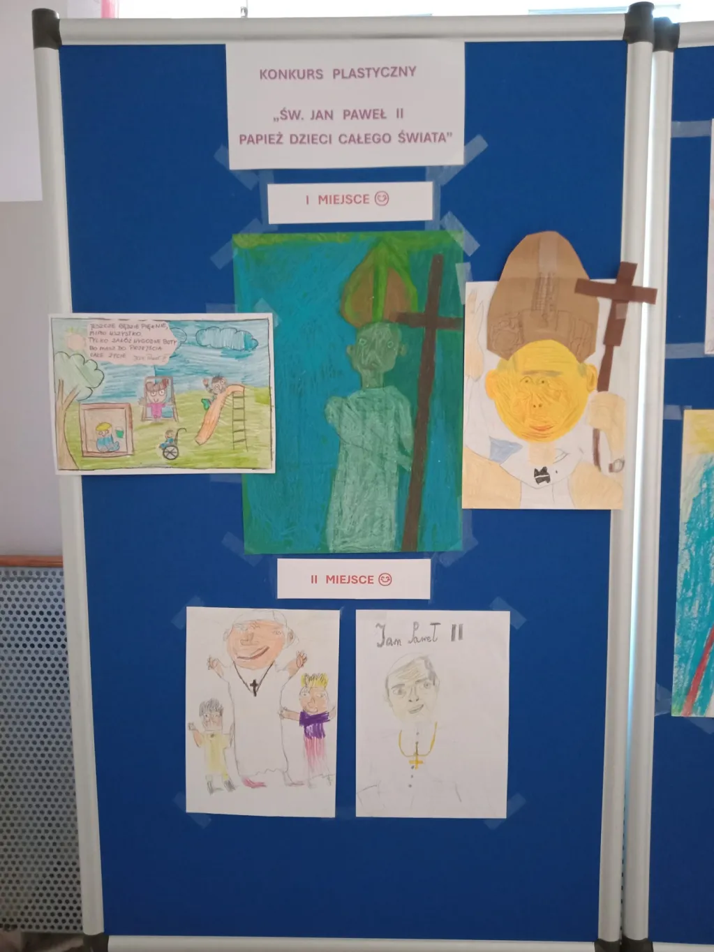 Dzisiaj w święto Papieża Polaka św. Jana Pawła II w naszej szkole miało miejsce rozstrzygnięcie konkursu plastycznego "Św. Jan Paweł II - Papież dzieci całego świata", który został ogłoszony z okazji corocznego Dnia Papieskiego. W konkursie wzięło udział aż 17 uczniów.