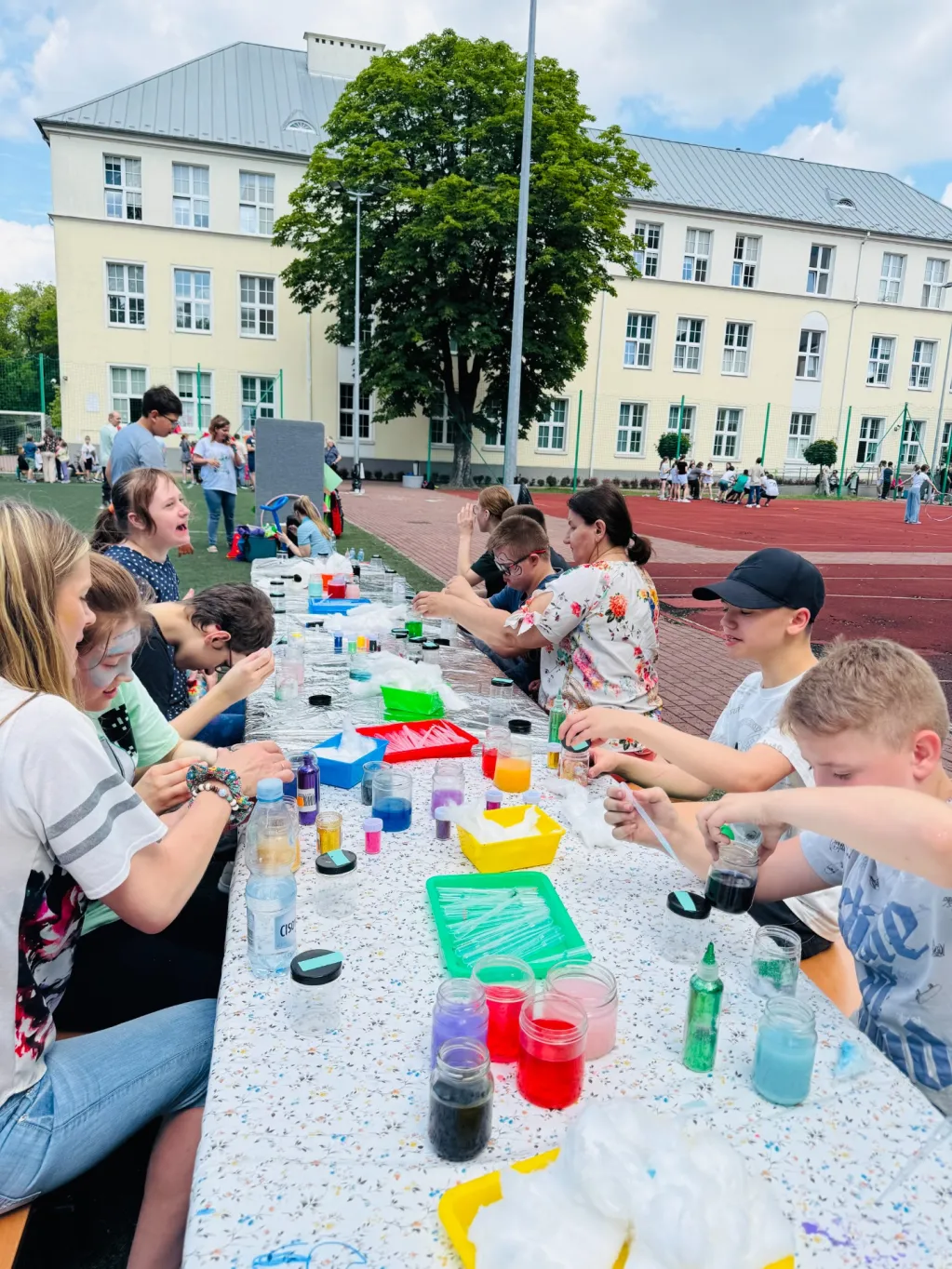 2 czerwca odbył się w naszej szkole radosny Festyn pod hasłem „Kosmiczny Dzień Dziecka – Radość bez granic!” To wyjątkowe wydarzenie zgromadziło uczniów i nauczycieli, którzy wspólnie świętowali ten szczególny dzień. Zabawę na boisku szkolnym poprzedził mini występ muzyczny Grona Pedagogicznego – „Dla Was – z serca!” Uczniowie usłyszeli znane i lubiane piosenki dla dzieci z repertuaru małe TGD, Sannah, Ewy Grzeszcak oraz współczesne hity dziecięce.