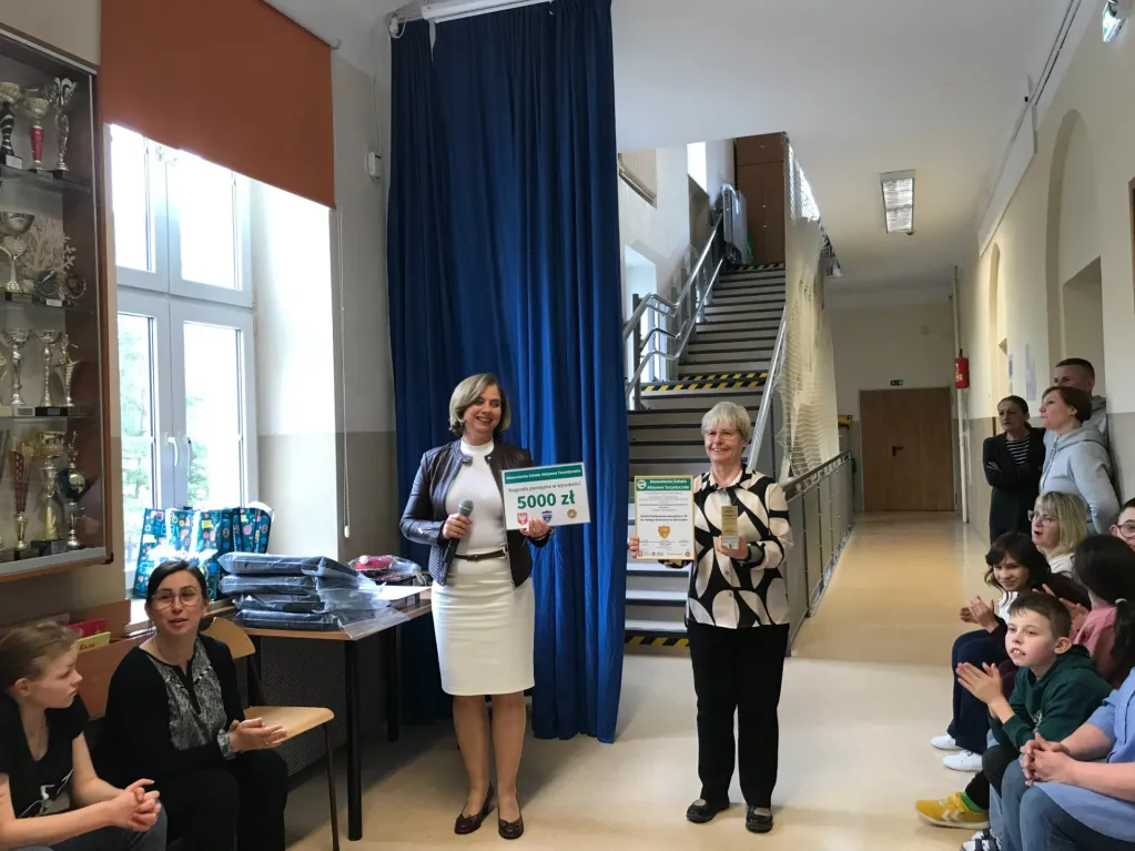 Na sukces ten pracowała cała szkoła, ale najbardziej do zdobycia tytułu i nagrody 5 tys. złotych przyczynili się członkowie naszego Szkolnego Koła Krajoznawczo – Turystycznego PTTK. Wyróżnieni uczniowie otrzymali nagrody i upominki. Nagrodę pieniężną przeznaczymy na kolejną wycieczkę.