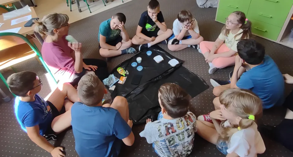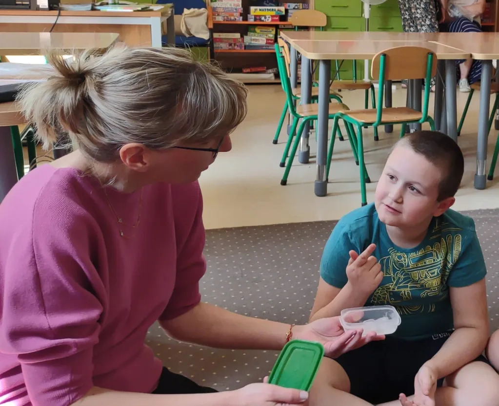 29 maja odbyła się kolejna lekcja biblioteczna, którą poprowadziła jak zawsze Pani Iwona Guzowska. Temat lekcji brzmiał "W kręgu naszych zmysłów". Uczniowie klas młodszych podczas zajęć odbyli bardzo interesującą podróż po krainie zmysłów: wzroku, węchu, smaku i dotyku