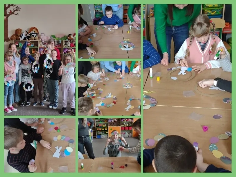 18 marca po raz kolejny odbyły się w szkolnej świetlicy warsztaty biblioteczne, które jak zwykle poprowadziła Pani Iwona Guzowska- pracownik Biblioteki Publicznej w dzielnicy Targówek m. st. Warszawy. Tematem zajęć była tym razem Wielkanoc. Młodsi uczniowie mogli utrwalić wiadomości na temat tradycji wielkanocnych i wykonać ciekawą pracę plastyczną- wielkanocny wieniec.
