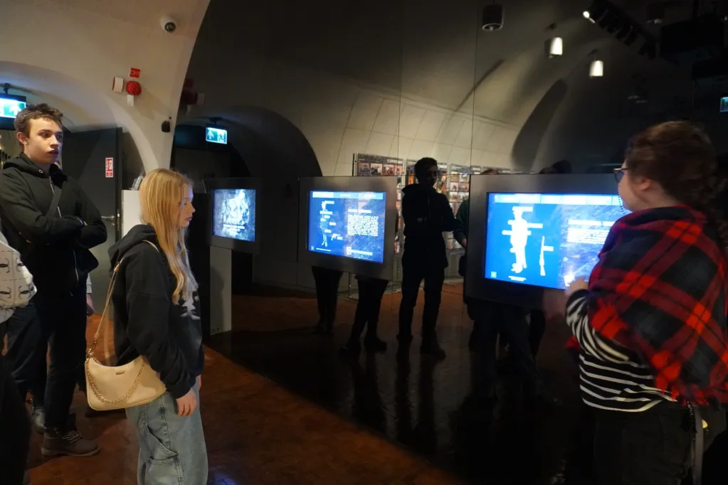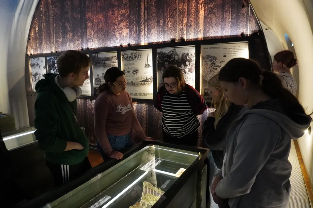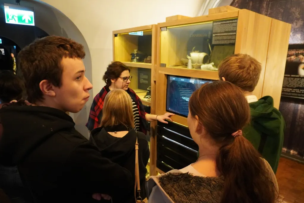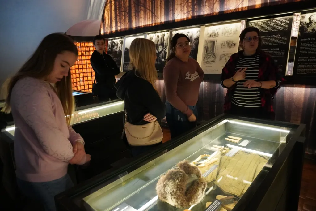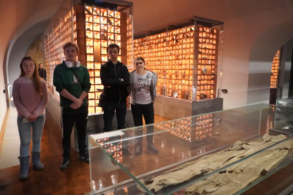 Uczniów szczególnie zainteresowały przedmioty wydobyte z grobów w czasie ekshumacji licznie zgromadzonych w Muzeum.