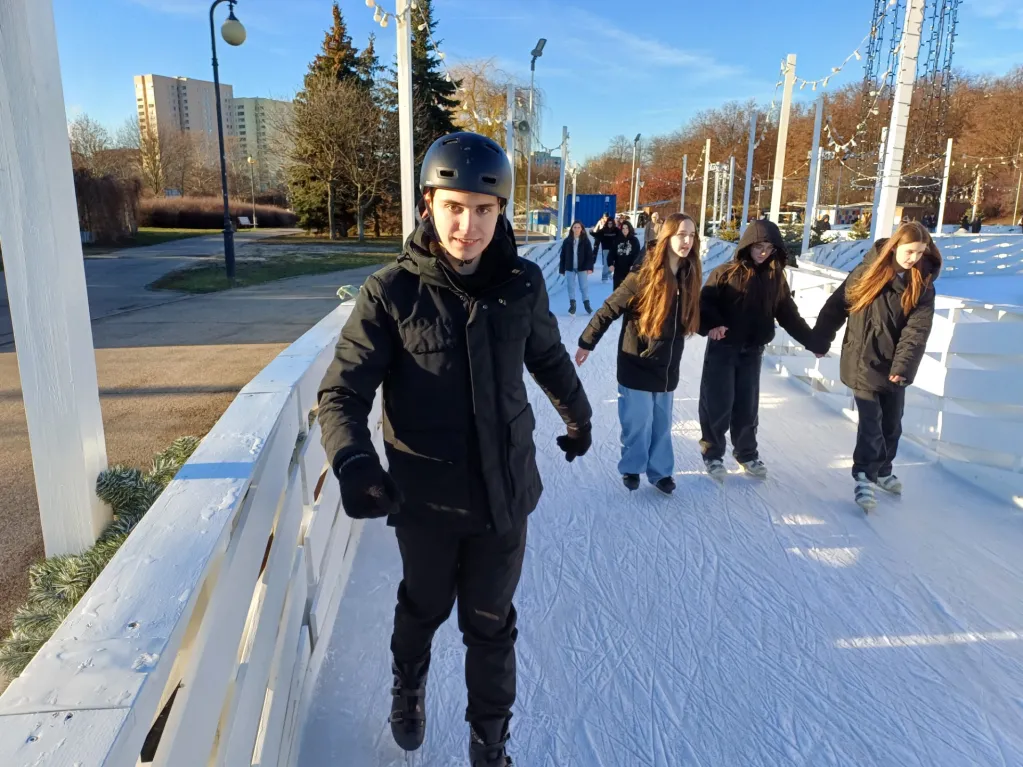 Opublikowano w Na sportowo Lekcja wf na łyżwach Lekcja wf na łyżwach Opublikowano: 18.12.2024 Dziś 13.12.2024 uczniowie klasy 8a wybrali się na 2 lekcjach wychowania fizycznego na łyżwy. Było super!!!! i tylko jedna wywrotka