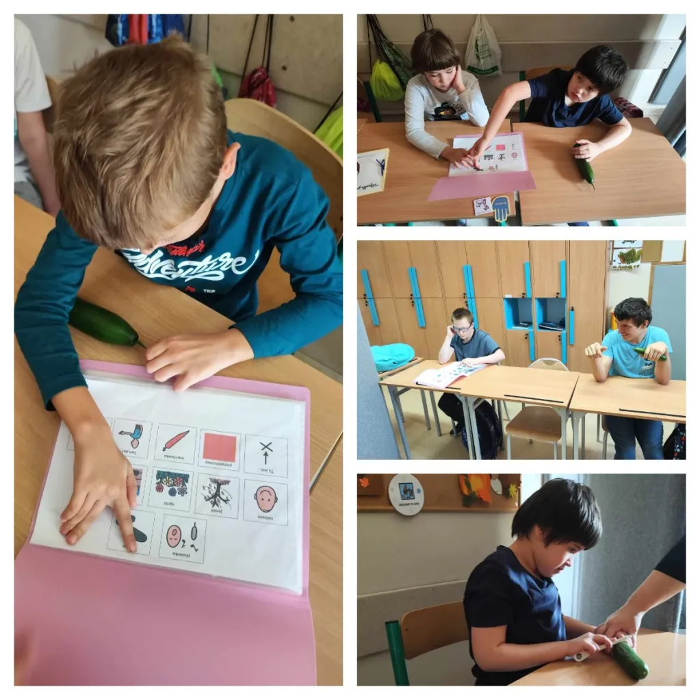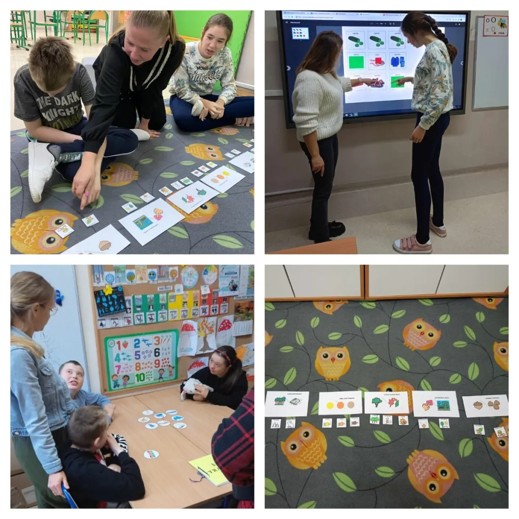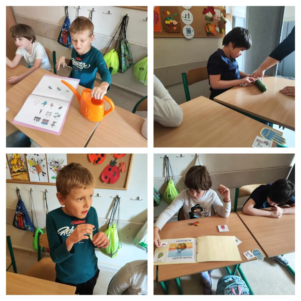 Podczas zajęć wykorzystywaliśmy książki do czytania uczestniczącego, symbole Mówik oraz PCS, tablety z komunikatorem Mówik a także komunikatory BIGmack. Odbywały się też wyjścia z uczniami do pobliskich sklepów, gdzie również mogli usprawniać swoje kompetencje komunikacyjne i językowe.