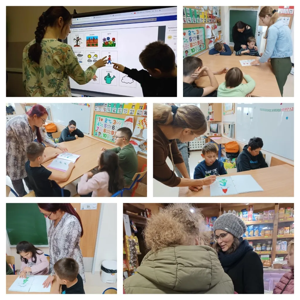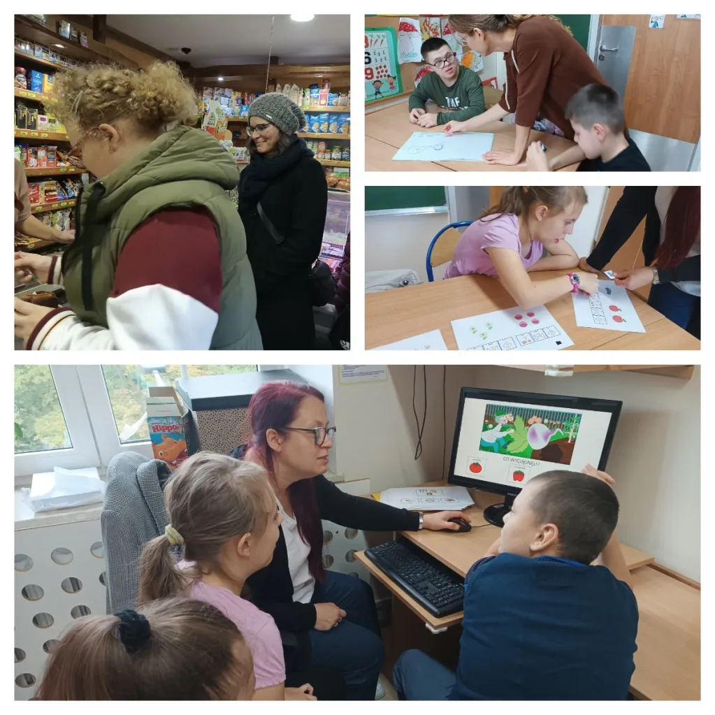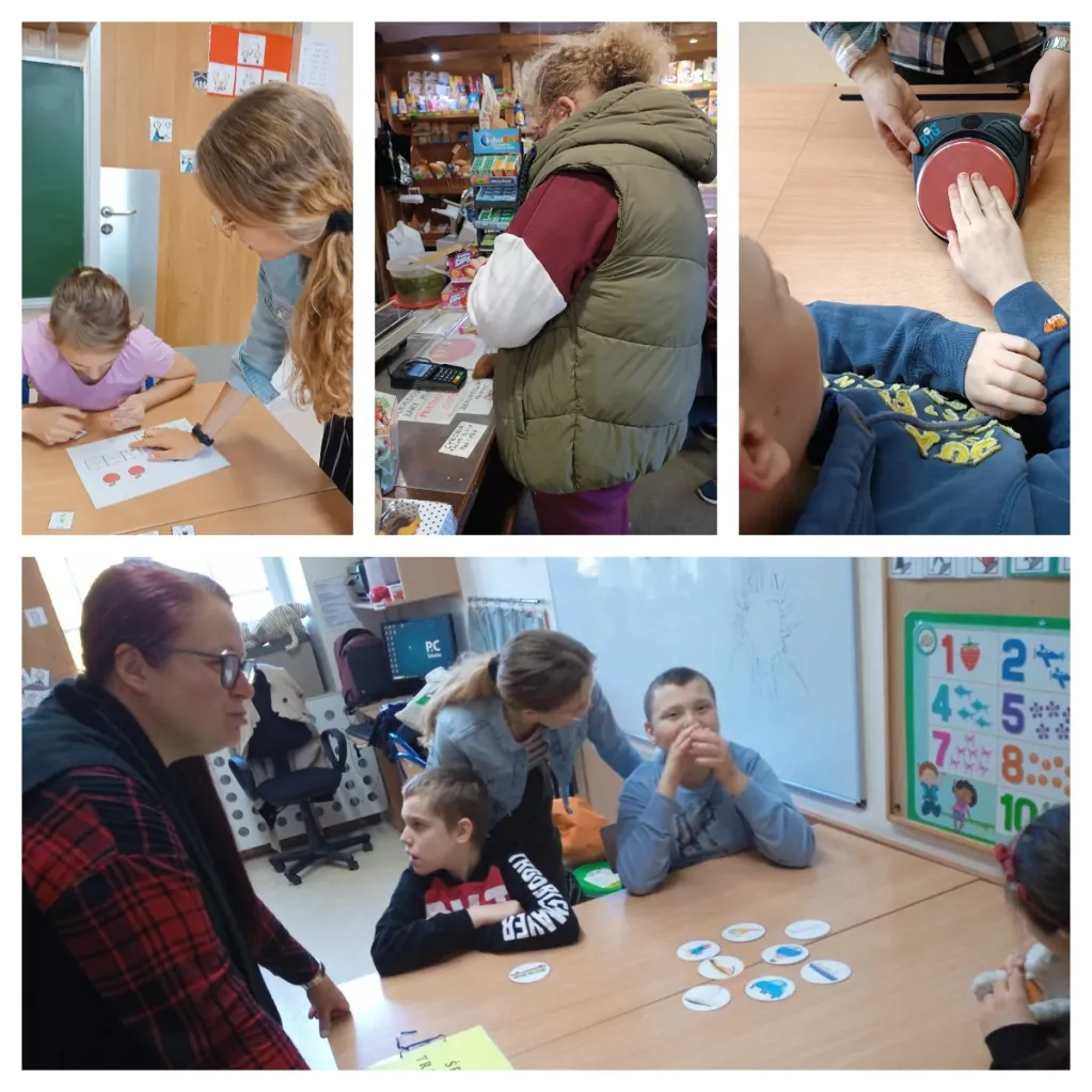 Podczas zajęć wykorzystywaliśmy książki do czytania uczestniczącego, symbole Mówik oraz PCS, tablety z komunikatorem Mówik a także komunikatory BIGmack. Odbywały się też wyjścia z uczniami do pobliskich sklepów, gdzie również mogli usprawniać swoje kompetencje komunikacyjne i językowe.