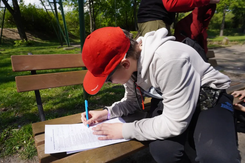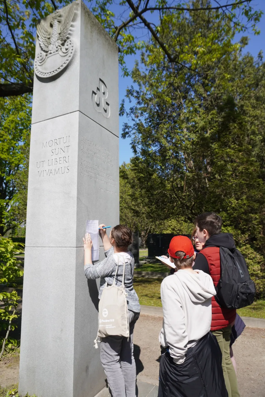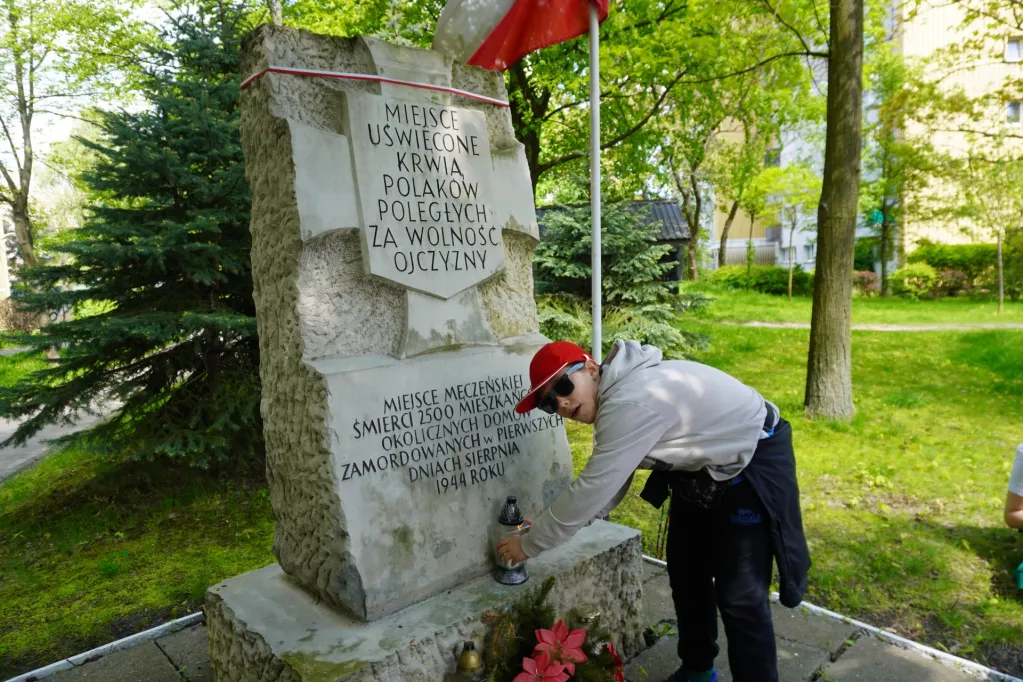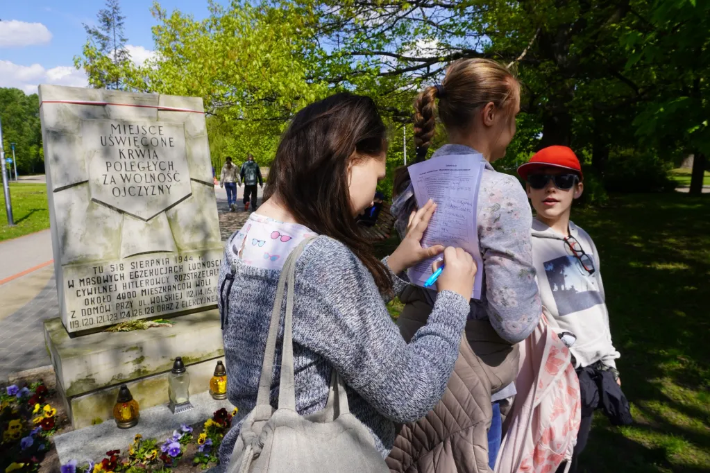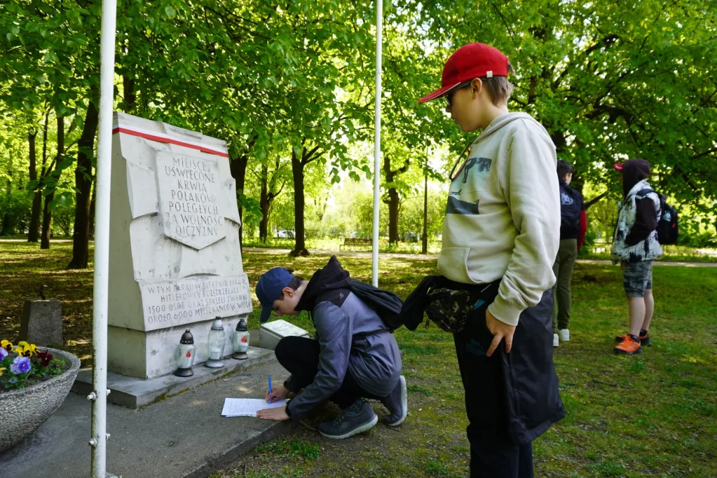 Wędrowaliśmy według mapy razem z uczniami z zaprzyjaźnionej szkoły 339 z Ursynowa. Szukaliśmy w terenie punktów zaznaczonych na mapie. Wykonywaliśmy zadania rajdowe w miejscach związanych z walką i męczeństwem Warszawiaków. W niektórych miejscach zapalaliśmy znicze.