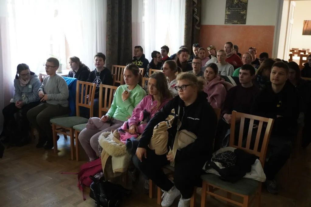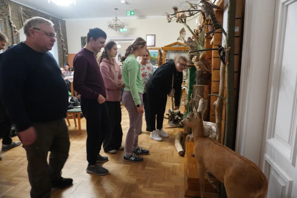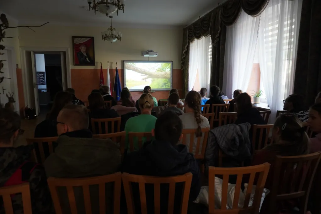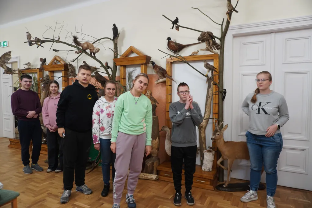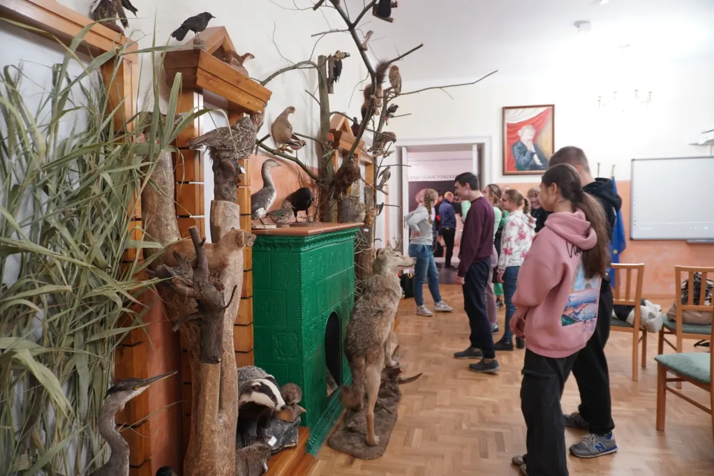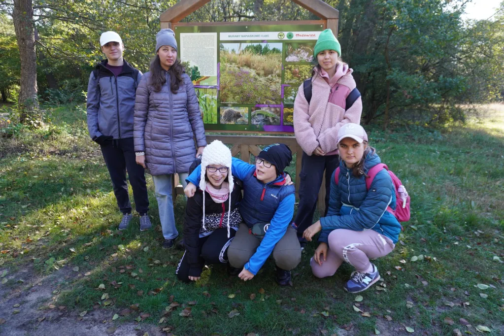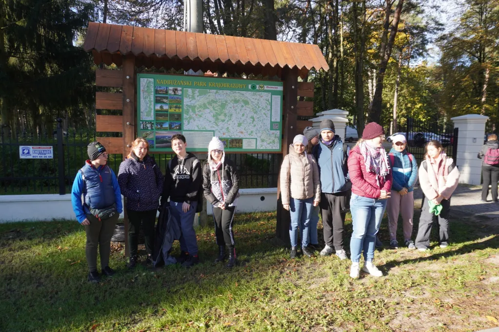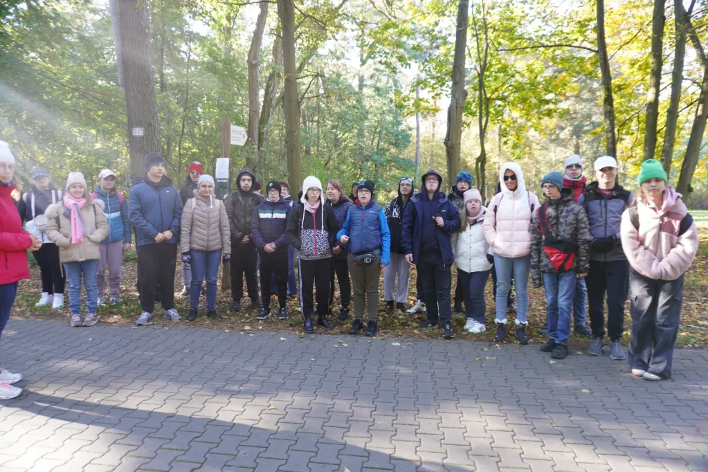 17 października 2024 r. wzięliśmy udział w kolejnej wycieczce z cyklu „Przyrodnicze szlaki Mazowsza”. Tym razem pojechaliśmy autokarem do Bazy Kaliska k. Łochowa. Towarzyszyli nam uczniowie z ZSS nr 89 z ul. Skaryszewskiej i SPS 177 z ul. Szczęśliwickiej. W bazie zostaliśmy podzieleni na grupy. Uczniowie naszej szkoły jako pierwsi powędrowali ścieżką edukacyjną nad Liwiec. Pan edukator opowiadał nam o typach lasów występujących w tej części Nadbużańskiego Parku Krajobrazowego, o gatunkach rodzimych i „przybyszach” z innych krajów, które rosną w naszych lasach. Poznaliśmy też zasady ochrony w parkach krajobrazowych. Po powrocie z wycieczki do lasu oglądaliśmy film o Nadbużańskim Parku Krajobrazowym – jego położeniu, historii, występujących tu gatunkach roślin i zwierząt. Na wystawie zwierząt rozpoznawaliśmy te, które widzieliśmy na filmie, a edukator opowiadał nam o nich ciekawostki. Następnie w Dworku Paderewskich obejrzeliśmy z przewodnikiem wystawę o Ignacym Paderewskim i jego żonie oraz zasługach Paderewskich dla rozwoju Łochowa i okolic. Poznaliśmy też ścieżkę edukacyjną wokół ośrodka edukacyjnego. Na końcu było ognisko, na którym upiekliśmy pyszne kiełbaski.