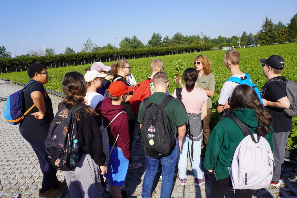 18 września uczestniczyliśmy w, rozpoczętym w ubiegłym roku szkolnym, projekcie edukacyjnym PTTK O/Mazowsze pt. „Przyrodnicze szlaki Mazowsza”. Tym razem pojechaliśmy autokarem, razem z uczniami ze szkoły 177, do szkółki kontenerowej w Skierdach w nadleśnictwie Jabłonna. Poznawaliśmy tam tajniki produkcji młodych drzewek – od siewek do sadzonek gotowych do wysadzenia w lasach. Szkółka w Skierdach produkuje rocznie ponad 3,5 mln drzewek, zaopatrując w nie tylko leśnictwa na Mazowszu, ale też poza nim. Jak zwykle w czasie naszych wędrówek przyrodniczymi szlakami Mazowsza mieliśmy ognisko integracyjne. Mieliśmy okazję upiec pyszne kiełbaski. Po zwiedzeniu z przewodniczką szkółki udaliśmy się do pobliskiego parku pałacowego w Jabłonnie. Poznaliśmy tam historię tego ciekawego miejsca – siedziby Księcia Józefa Poniatowskiego i jego spadkobierców. Podziwialiśmy też liczne drzewa – pomniki przyrody.