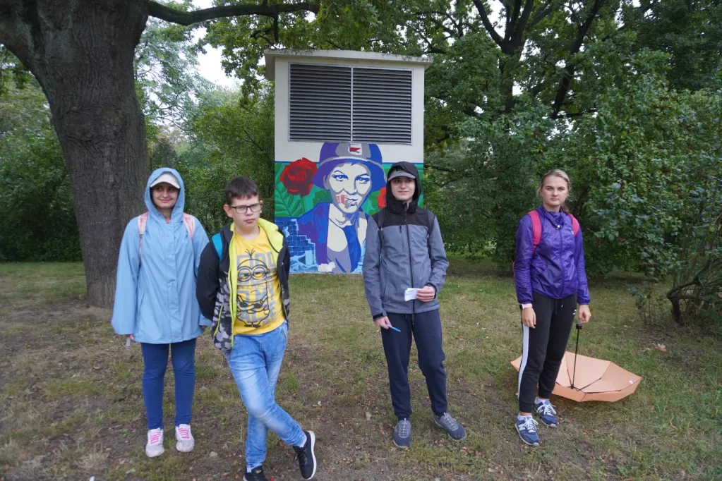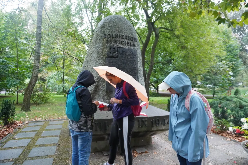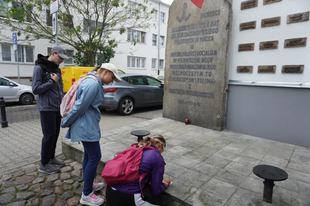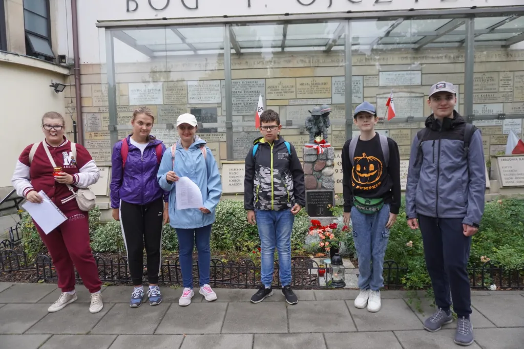 14 września uczestniczyliśmy w kolejnym rajdzie z cyklu „Pamięć i tożsamość. 80 rocznica Powstania Warszawskiego. Tym razem udaliśmy się na Żoliborz. Wędrowaliśmy śladami powstańców, szukając według mapy, miejsc upamiętnionych walką żołnierzy różnych zgrupowań. Znaleźliśmy miejsce, gdzie zaczęły się pierwsze walki powstańcze – jeszcze przed godziną „W”. Poznaliśmy też historię harcerzy – „szczurów kanałowych” i łączników roznoszących pocztę. Odkrywaliśmy miejsca, gdzie mieściły się siedziby sztabów różnych oddziałów oraz miejsca walki i męczeństwa ludności Żoliborza.