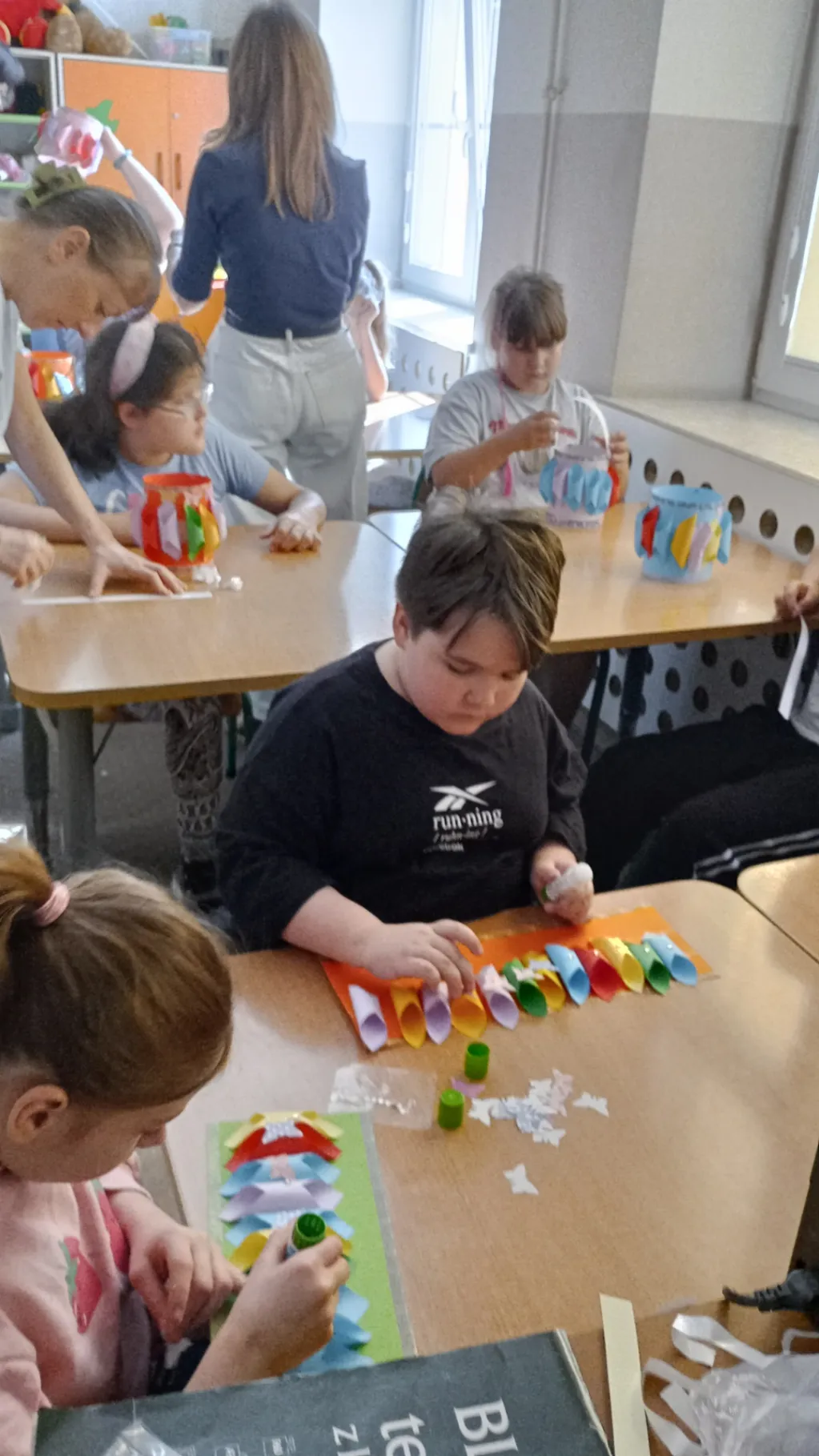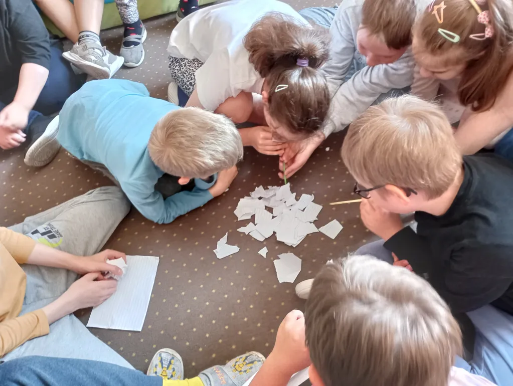 W dniu 12 czerwca 2025 miało miejsce ostatnie w tym roku szkolnym spotkanie z bibliotekarką z Biblioteki Publicznej w Dzielnicy Targówek panią Iwoną Guzowską. Uczniowie mieli okazję posłuchać tekstu czytanego, wykonać barwne lampiony ozdobione według własnej wyobraźni i kreatywności. Spotkaniu towarzyszyła miła atmosfera. Uczniowie świetnie się bawili, a efekt własnej pracy mogli zaprezentować na forum klasy i zabrać do domu.