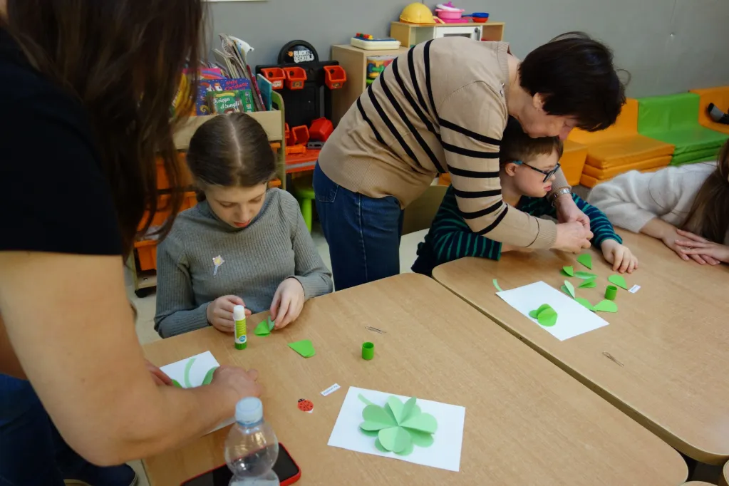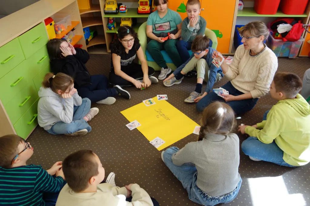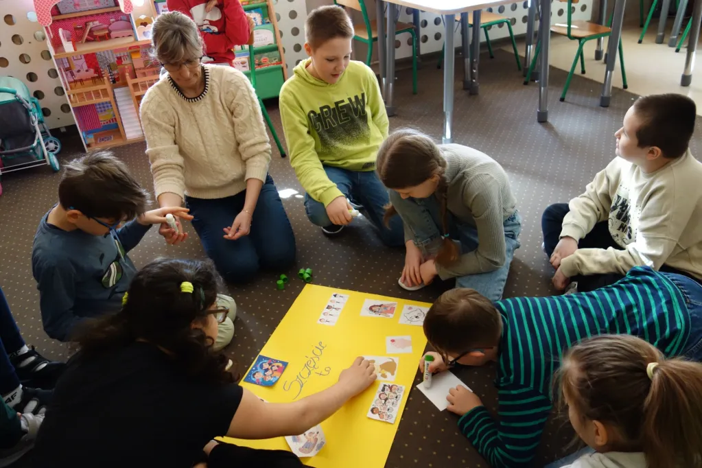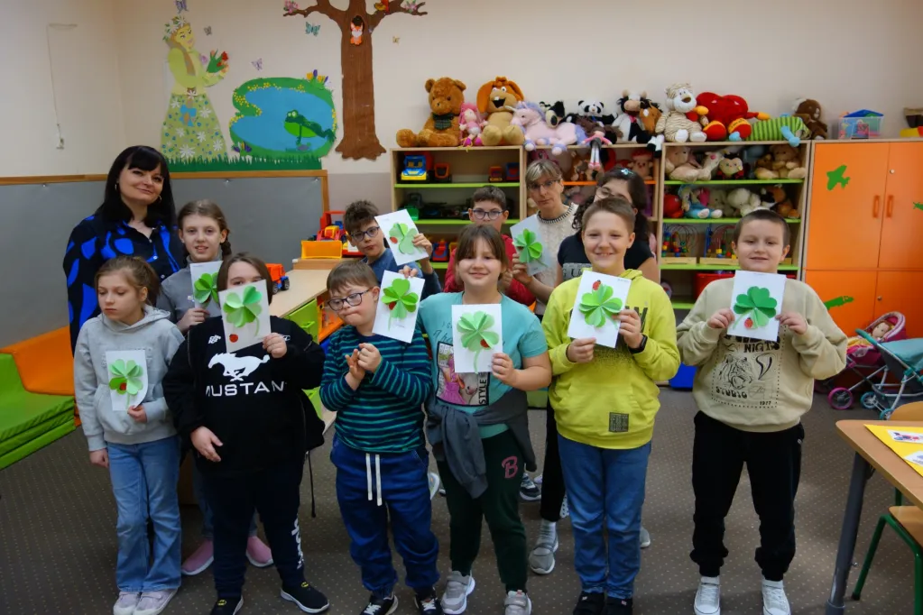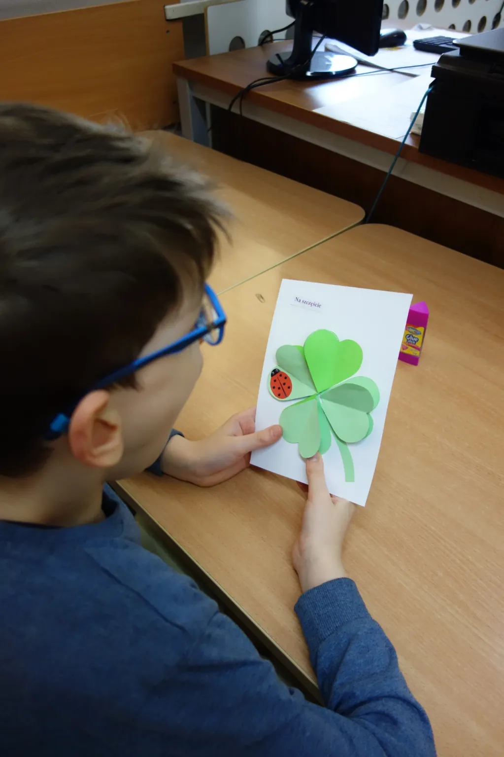 W dniu 17 marca 2025 miało miejsce cykliczne spotkanie z bibliotekarką z Biblioteki Publicznej w Dzielnicy Targówek panią Iwoną Guzowską. Uczniowie mieli okazję posłuchać tekstu czytanego i wspólnie wykonać plakat "Co to jest szczęście?" Spotkaniu towarzyszyła miła atmosfera. Efektem zajęć było własnoręczne wykonanie kartki z koniczynką, jako symbolem szczęścia.