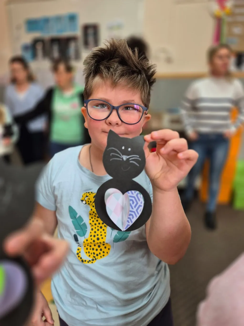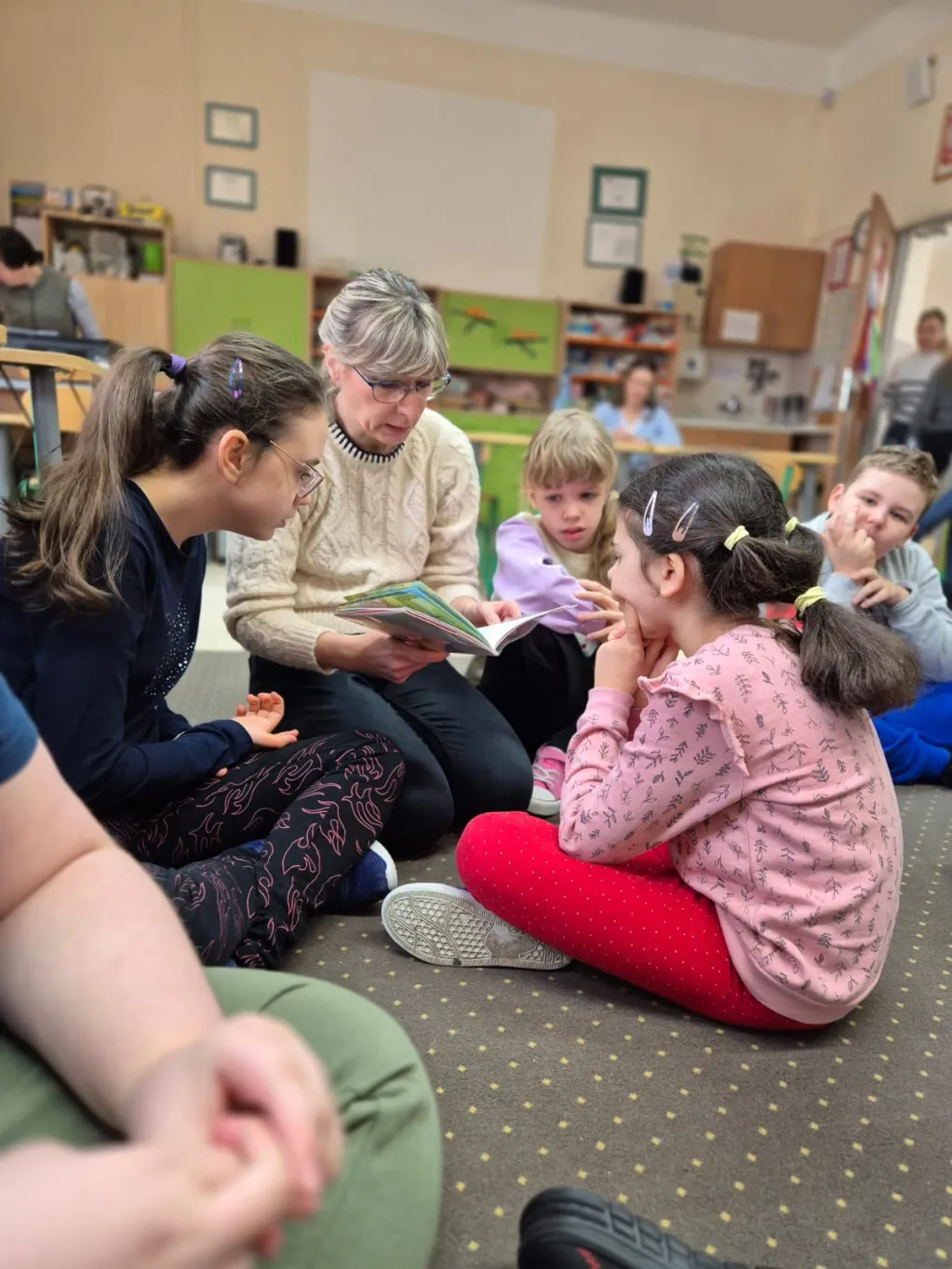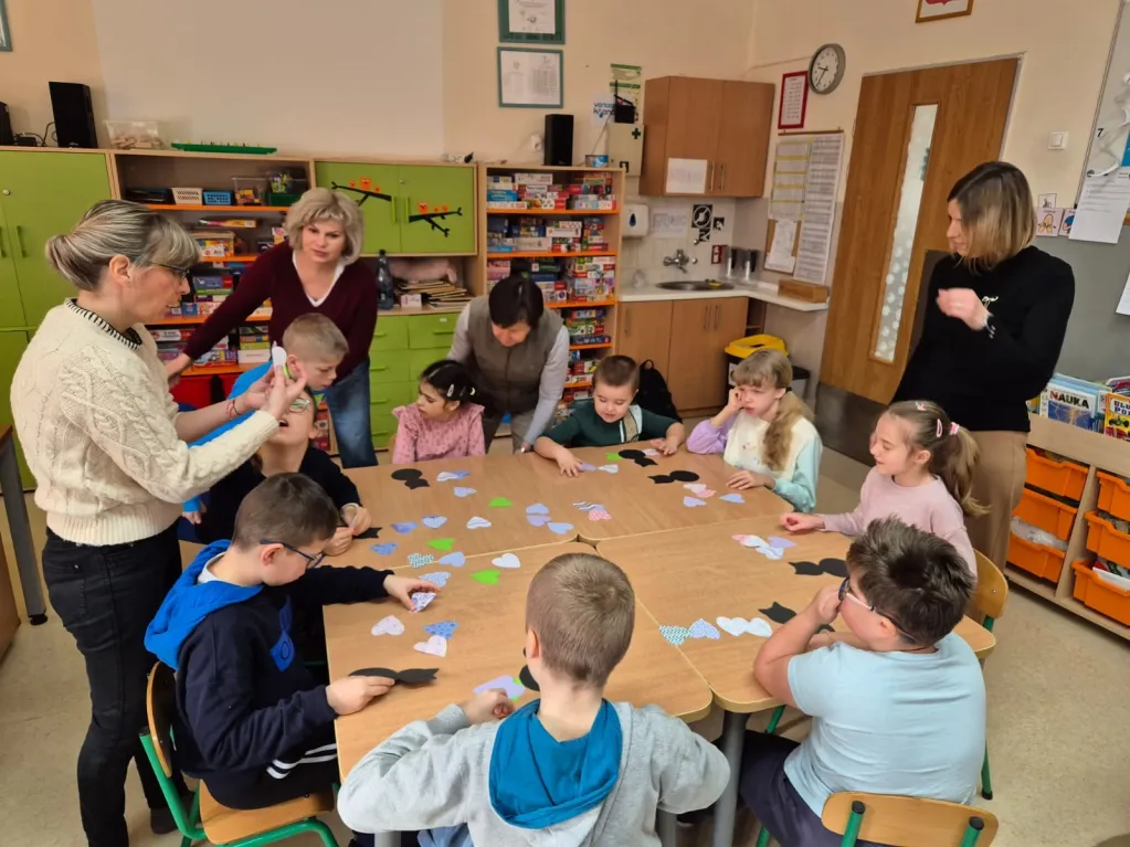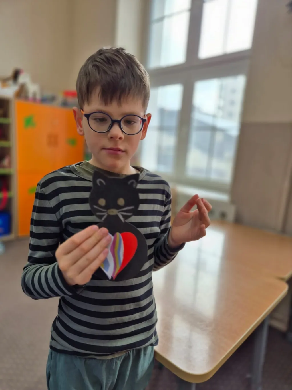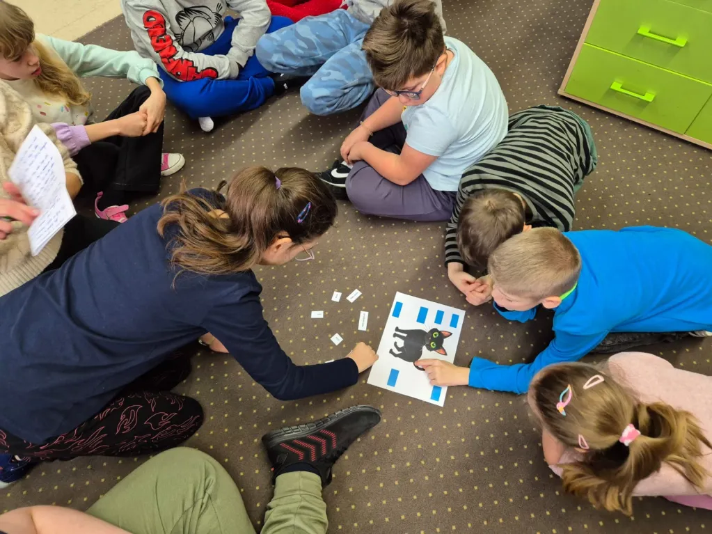 W dniu 20 lutego 2025 miało miejsce cykliczne spotkanie z bibliotekarką z Biblioteki Publicznej w Dzielnicy Targówek panią Iwoną Guzowską. Uczniowie mieli okazję posłuchać tekstu czytanego i pracę plastyczną "Zakochany kot". Spotkaniu towarzyszyła miła atmosfera.
