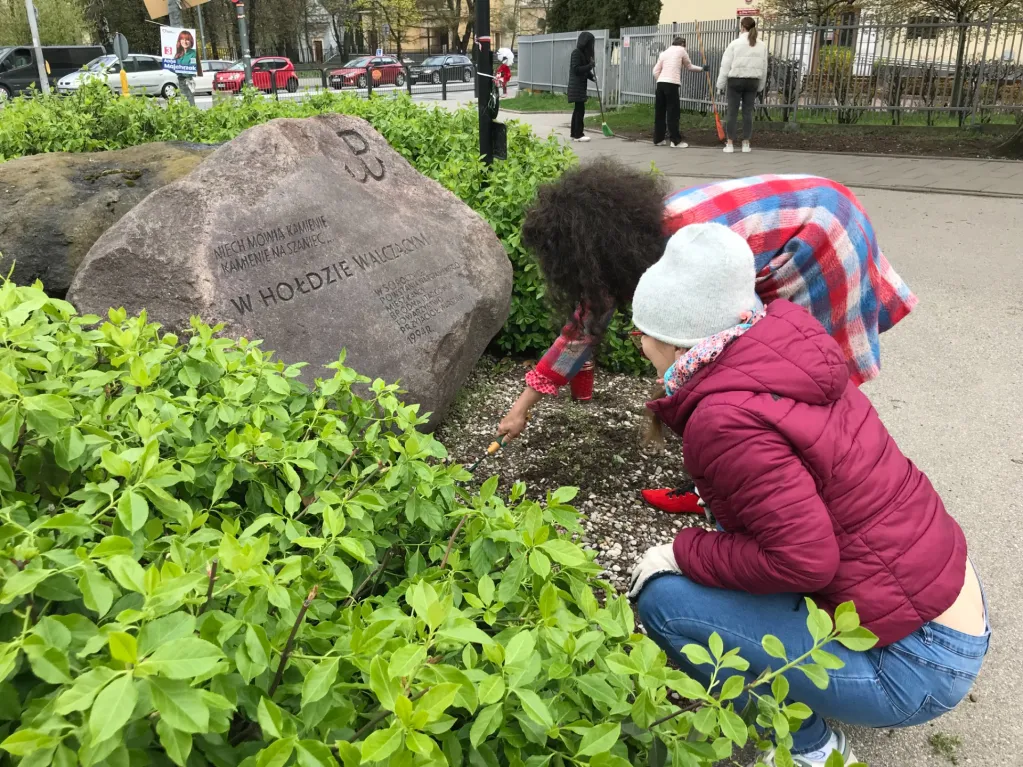 Kwiecień jest Miesiącem Pamięci Narodowej. Z tej okazji 5 kwietnia uczennice klasy 8e wysprzątały okolice pomnika Reduty Bródnowskiej znajdującego się przed naszą szkołą. W ten sposób uczcili pamięć żołnierzy AK, którzy walczyli w tym miejscu w czasie Powstania Warszawskiego.