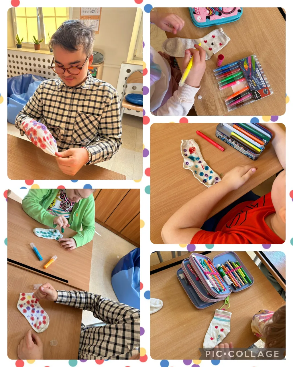 Wzorem lat ubiegłych, także i w tym roku, obchodziliśmy w naszej szkole w dniu 21.03.2025r. Światowy Dzień Zespołu Downa. W tym dniu tematem przewodnim były kolorowe skarpetki nie do pary. Uczniowie mieli możliwość zaprojektowania swojej skarpetki wg. własnego pomysłu. Nie obyło się też oczywiście bez wykonania ciekawych zdjęć, do obejrzenia których serdecznie zapraszamy 😀