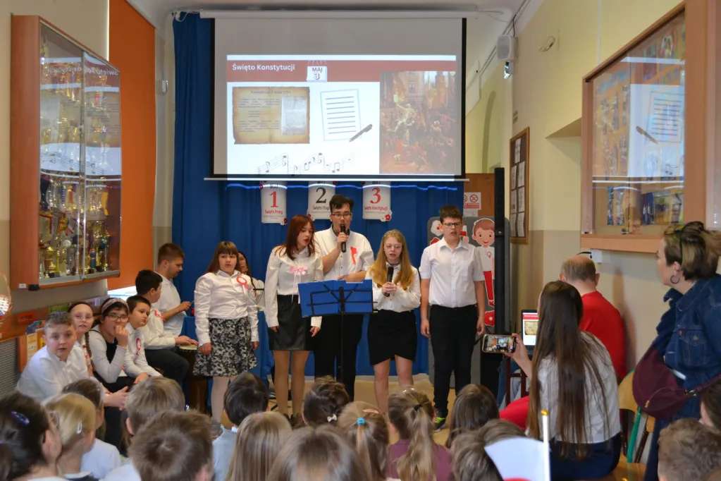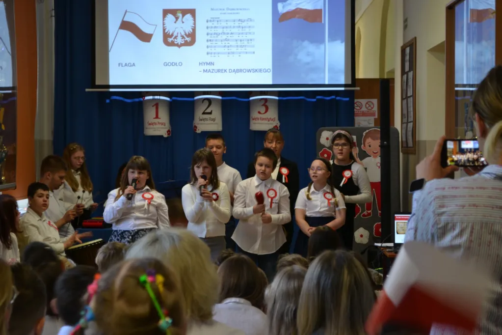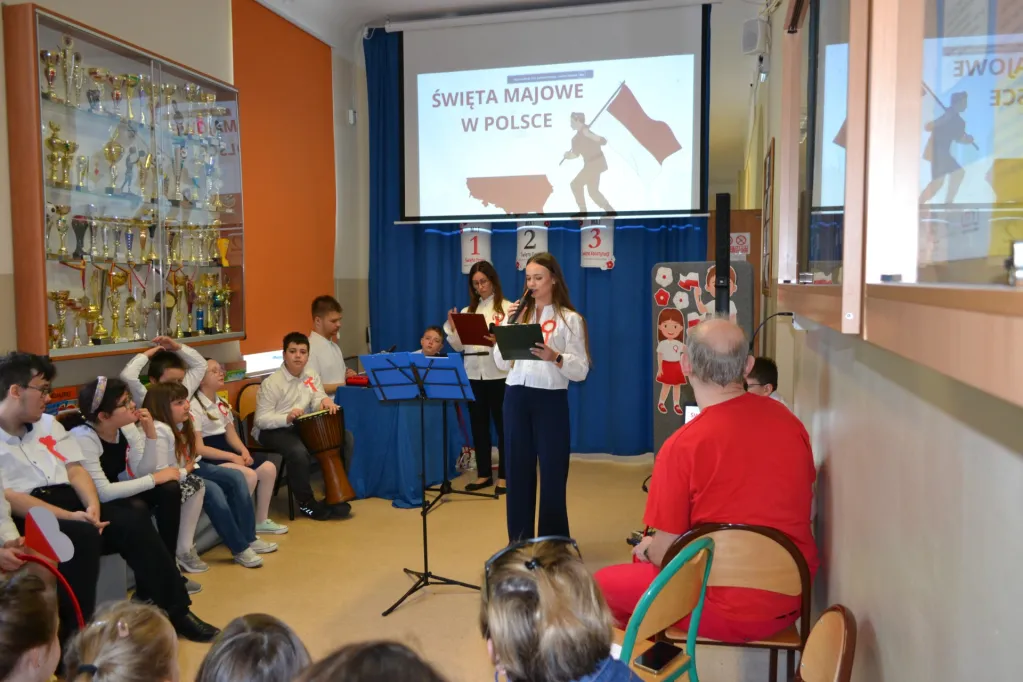 Opublikowano w Informacje bieżące Święta majowe Święta majowe Opublikowano: 06.05.2025 Z okazji 234 rocznicy uchwalenia Konstytucji 3 Maja w naszej szkole odbyła się uroczysta akademia z udziałem zaproszonych gości - Przedszkola Integracyjnego nr 120 w Warszawie.