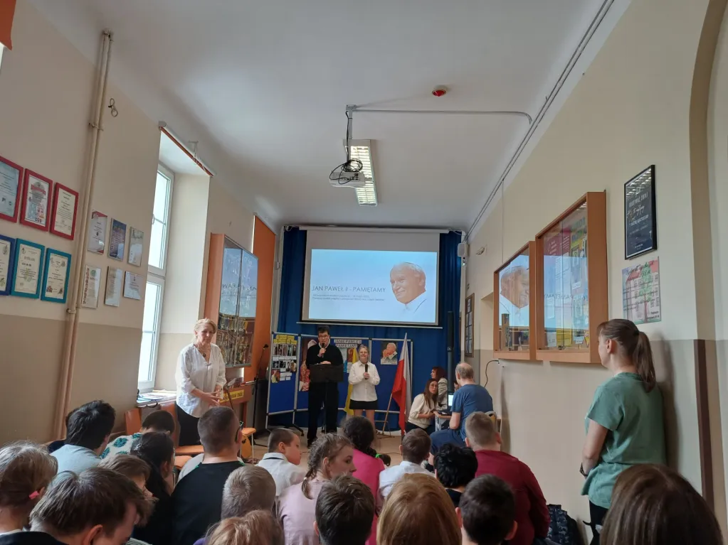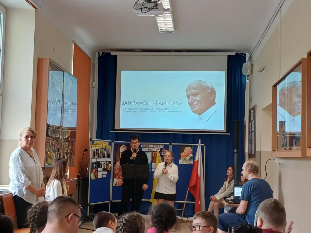Z okazji 105 rocznicy urodzin i 20 rocznicy śmierci naszego wybitnego rodaka, świętego papieża Jana Pawła II, odbyła się w naszej Szkole Uroczysta Akademia pt. " Janie Pawle II - pamiętamy" Akademię i gazetkę o Ojcu Świętym