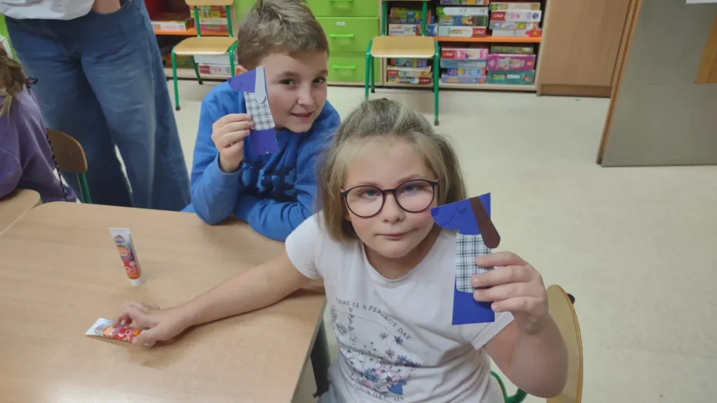 Uczniowie klas młodszych miały okazję poznać mało znane zawody wykonywane przez psy. Uczniowie wspólnie przeczytali historię Falco, psa-strażnika portów lotniczych, który dba o bezpieczeństwo lotów i jest specjalistą od odstraszania dzikich ptaków i innych zwierząt. Następnie uczniowie własnoręcznie wykonali zakładki do książek. Nasi uczniowie wiedzą doskonale, że każdy pies, nie ważne kundelek czy rasowiec – zasługuje na uwagę i miłość!