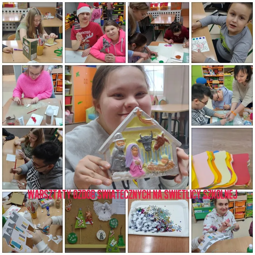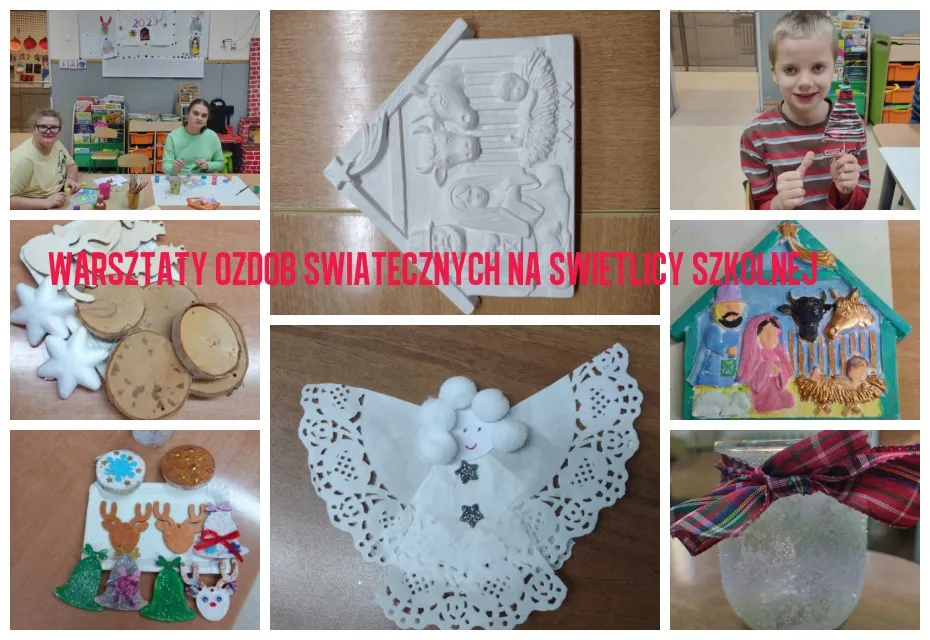 W dniach 4-8 grudnia 2023r. na świetlicy szkolnej odbyły się warsztaty ozdób świątecznych w ramach zajęć świetlicowych. W czasie warsztatów dzieci z wielkim zaangażowaniem tworzyły własne ozdoby świąteczne. Dzięki nim uczniowie mogli poczuć magiczną atmosferę świąt i cieszyć się nią z rówieśnikami.