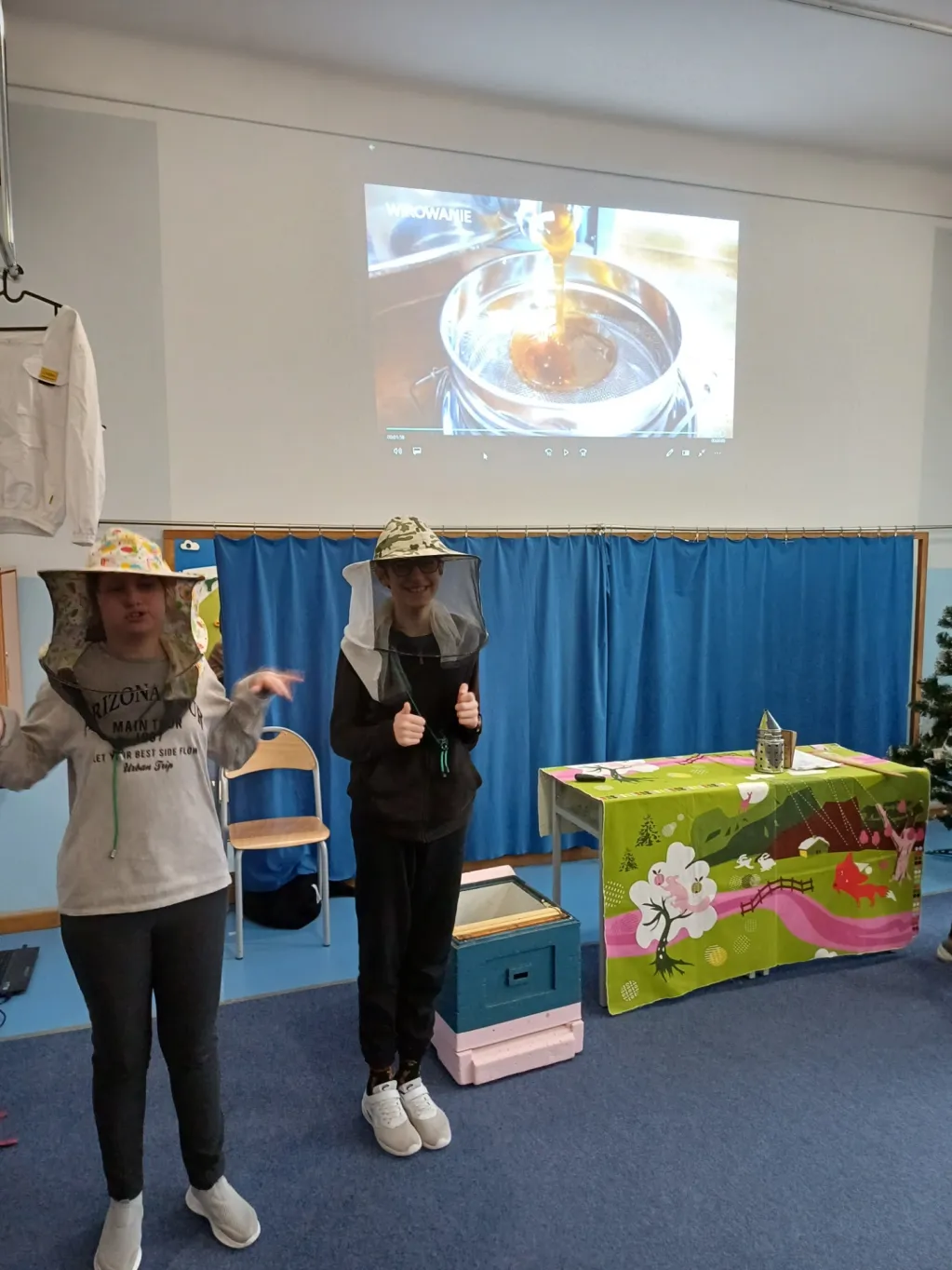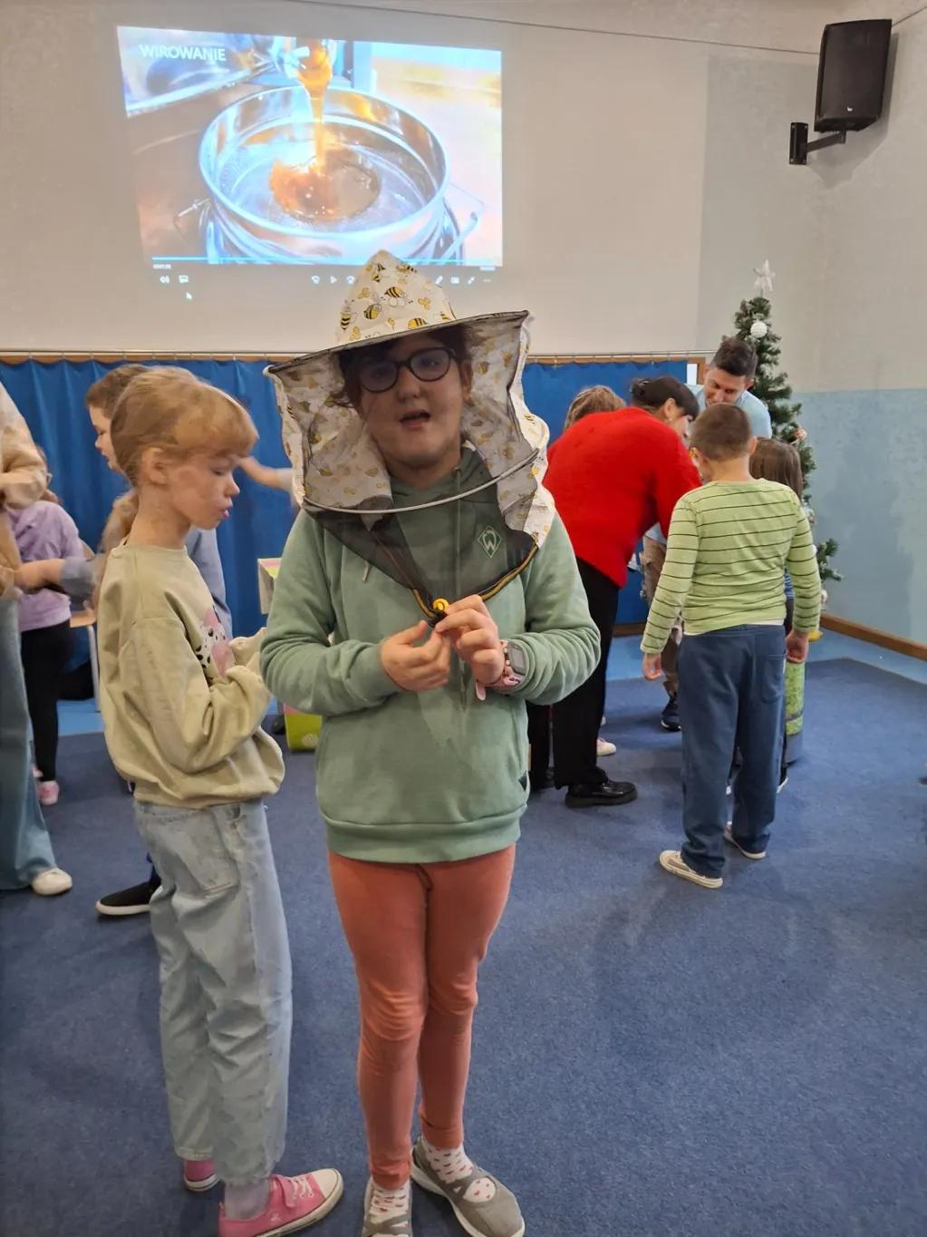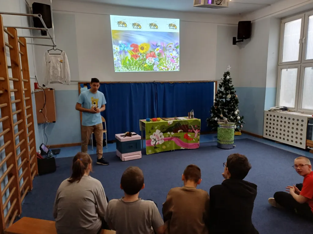Pszczoły to owady, które możemy spotkać wiosenną i letnią porą, ale wiedzę na temat tych bardzo pożytecznych stworzeń, zdobyliśmy w naszej szkole 9 grudnia. W tym dniu odbyły się mikołajkowe warsztaty pszczelarskie „Poznaję świat pszczół i warsztat pracy pszczelarza” . Pan Mateusz opowiedział wszystkim uczniom o życiu i hodowli pszczół a także o pracy pszczelarza. Dowiedzieliśmy się jak bardzo nasze życie związane jest z tymi owadami. Nie zabrakło również atmosfery mikołajowej, wraz z panem pszczelarzem była również Pani Mikołajowa, która wręczyła wszystkim upominki.