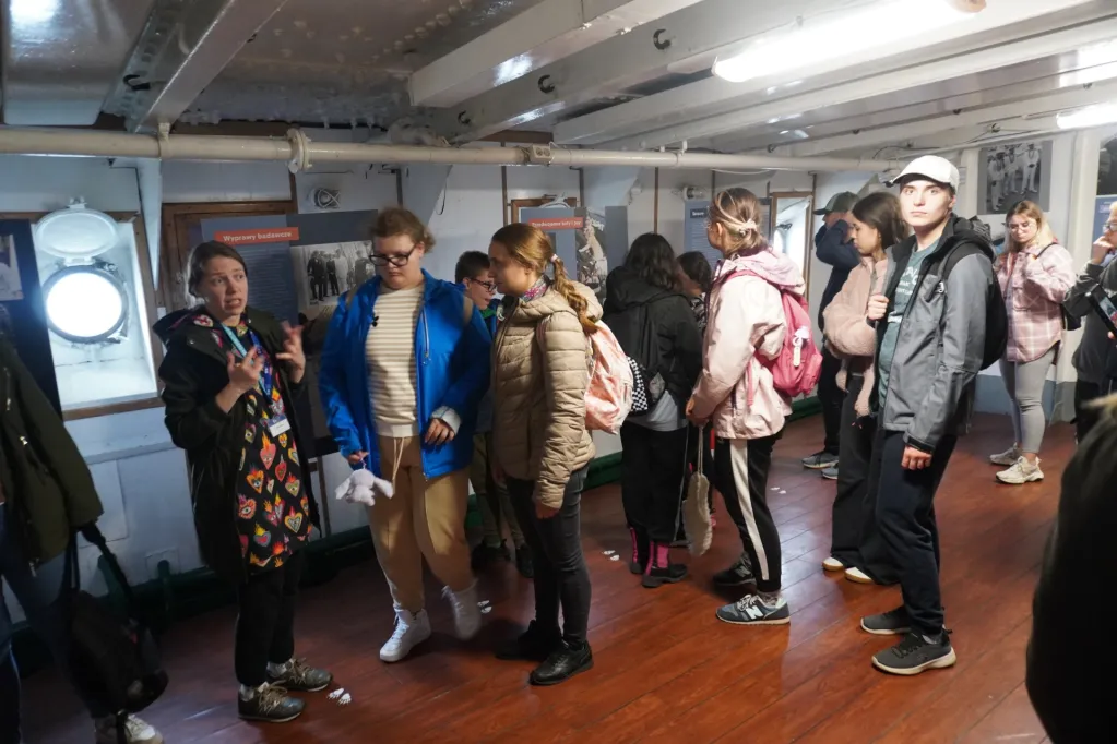 Po obiedzie popłynęliśmy statkiem na Westerplatte. Przewodniczka opowiadała nam po drodze o tym, co mijaliśmy: nabrzeżach portowych, różnych typach statków, Twierdzy Wisłoujście i o samym półwyspie Westerplatte i jego burzliwej historii związanej z II wojną światową. Potem spacerowaliśmy po Westerplatte, ogladając pomniki historii. Doszliśmy na samą górę aż do Pomnika Obrońców Wybrzeża. Po powrocie statkiem z Westerplatte przespacerowaliśmy się wzdłuż Motławy, podziwiając stary Żuraw Gdański, zabytkowe kamienice i spichrze.
