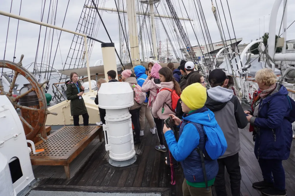 Następnego dnia pojechaliśmy pociągiem do Gdyni. Najpierw wjechaliśmy kolejką na Kamienną Górę Tu poznaliśmy historię budowy Gdyni oraz oglądaliśmy panoramę portu. Potem udaliśmy się na gdyńską plażę, oglądając po drodze okręt podwodny. Po odpoczynku i zabawie na plaży powędrowaliśmy na nabrzeże, przy którym przycumowane były statki. Zwiedzaliśmy z przewodniczką słynny statek szkolny „Dar Pomorza”.
