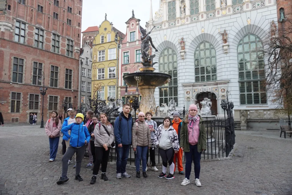 W dniach 8 – 9 października 2024 r. byliśmy na wycieczce w Gdańsku i Gdyni. Pojechaliśmy tam pociągiem. Pierwszego dnia zwiedzaliśmy gdańską Starówkę – Ratusz Staromiejski, Fontannę Neptuna, Dwór Artusa, bramy miejskie. W największym ceglanym kościele na świecie - Bazylice Mariackiej byliśmy na pokazie działania zegara astronomicznego, oglądaliśmy słynne dzieła średniowiecznego malarstwa i rzeźby, w końcu weszliśmy na wieżę, skąd rozpościerała się piękna panorama Gdańska.