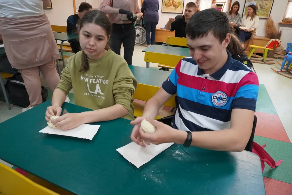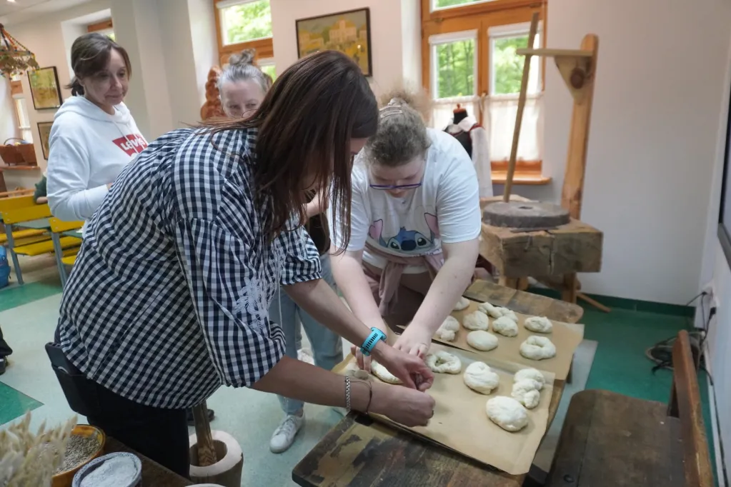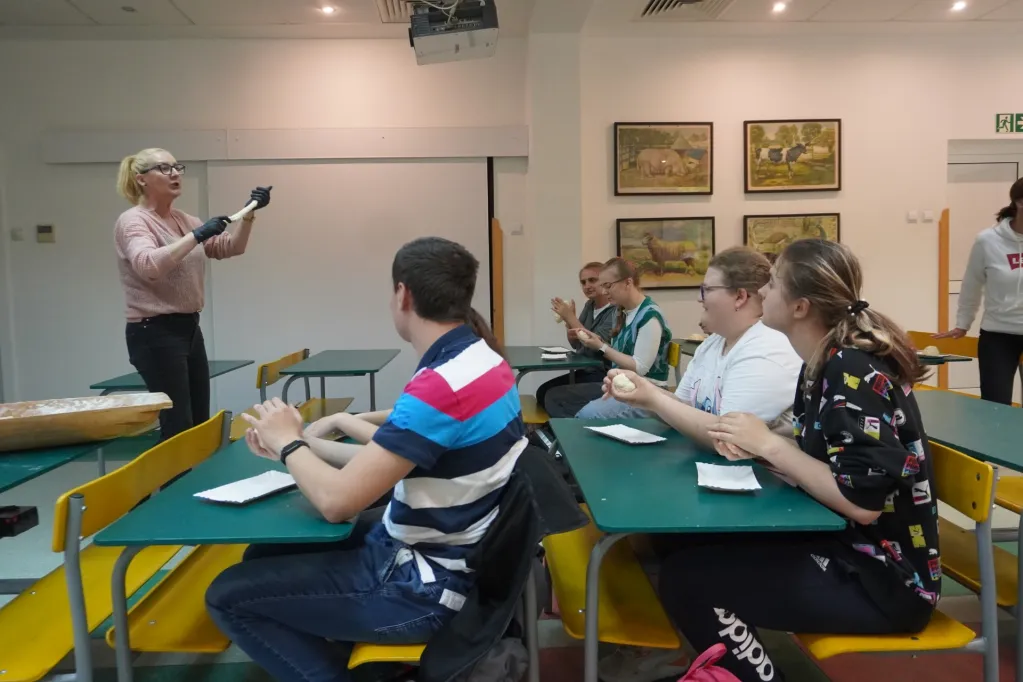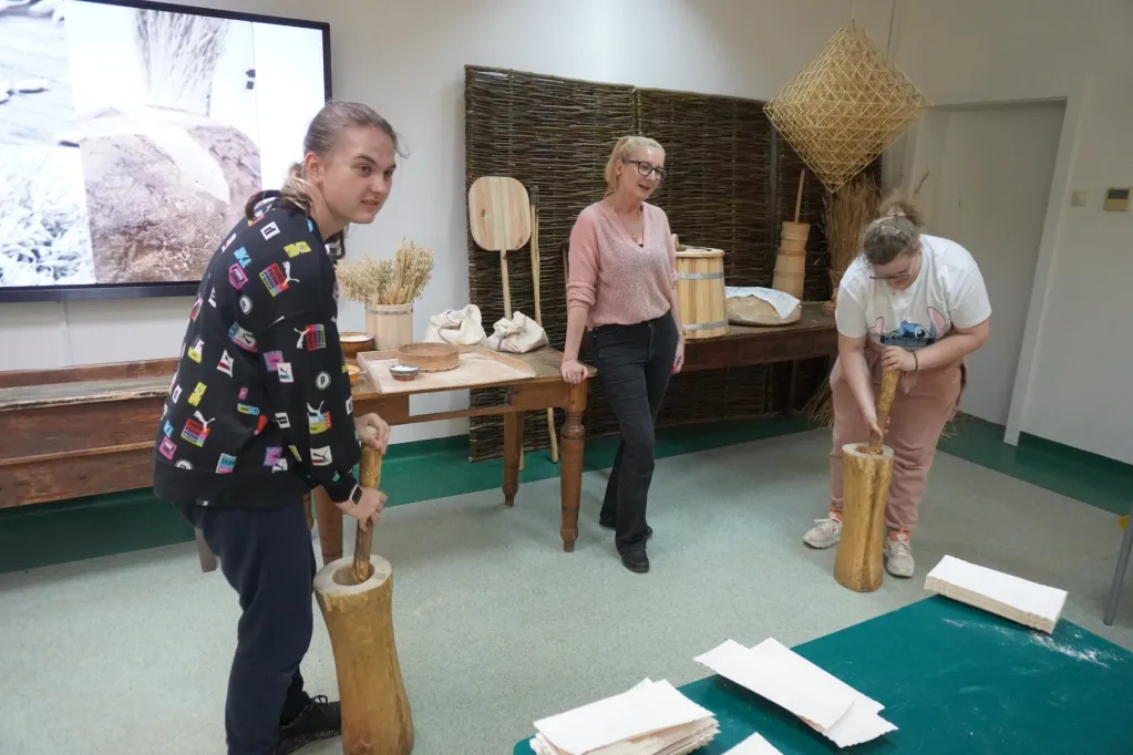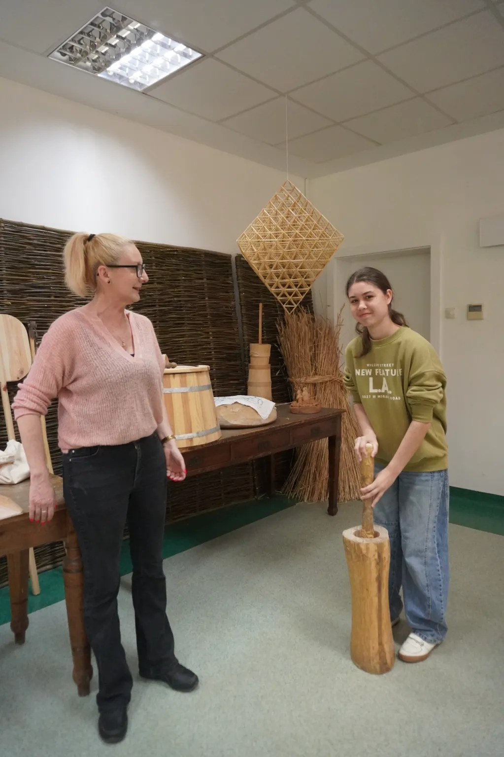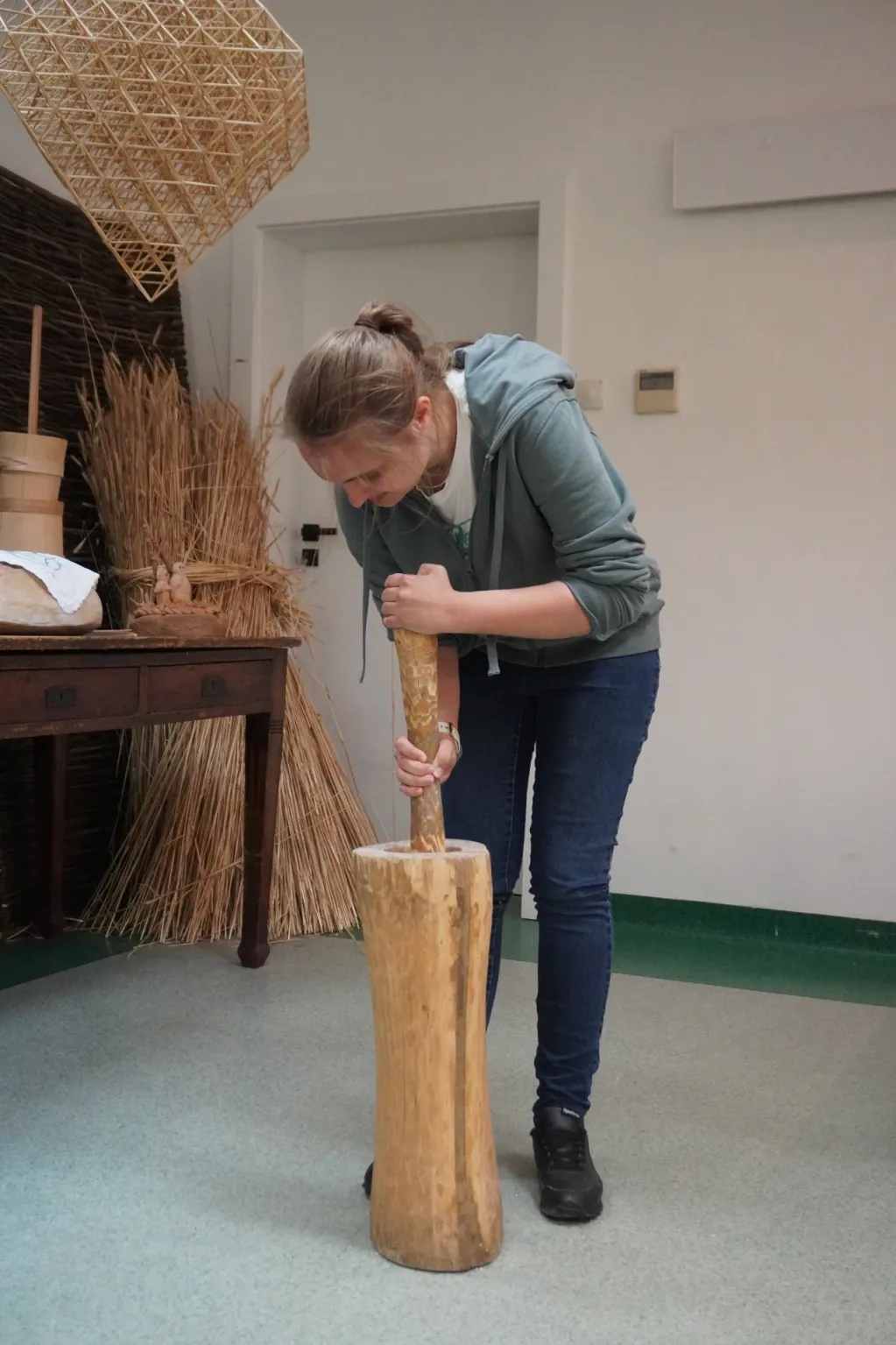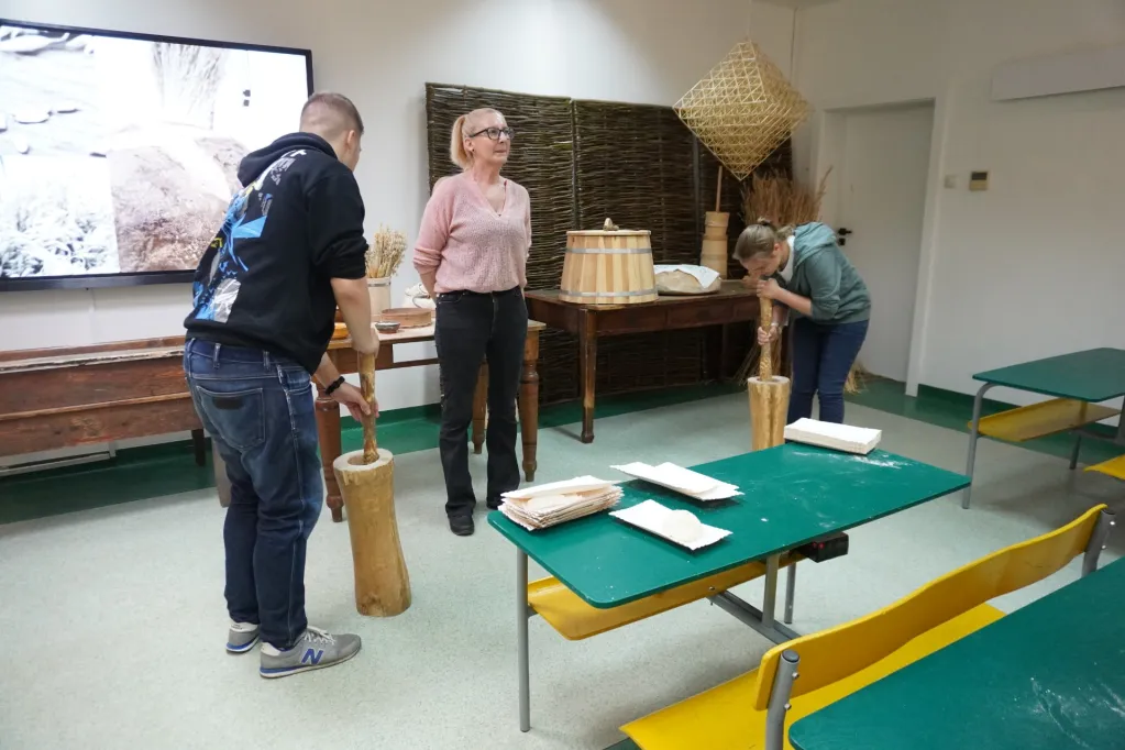 Uczniowie odwiedzili Skansen Wsi Radomskiej, w którym oprócz zwiedzania zabytkowych chat i wiejskich zagród z przewodnikiem uczestniczyli w warsztatach „Od ziarenka do bochenka” oraz „Certyfikat sprawności pradziadka”. Własnoręcznie ubijali ziarno na mąkę oraz robili w kierzance masło. Zrobione przez dzieci i upieczone bułeczki smakowały znakomicie!