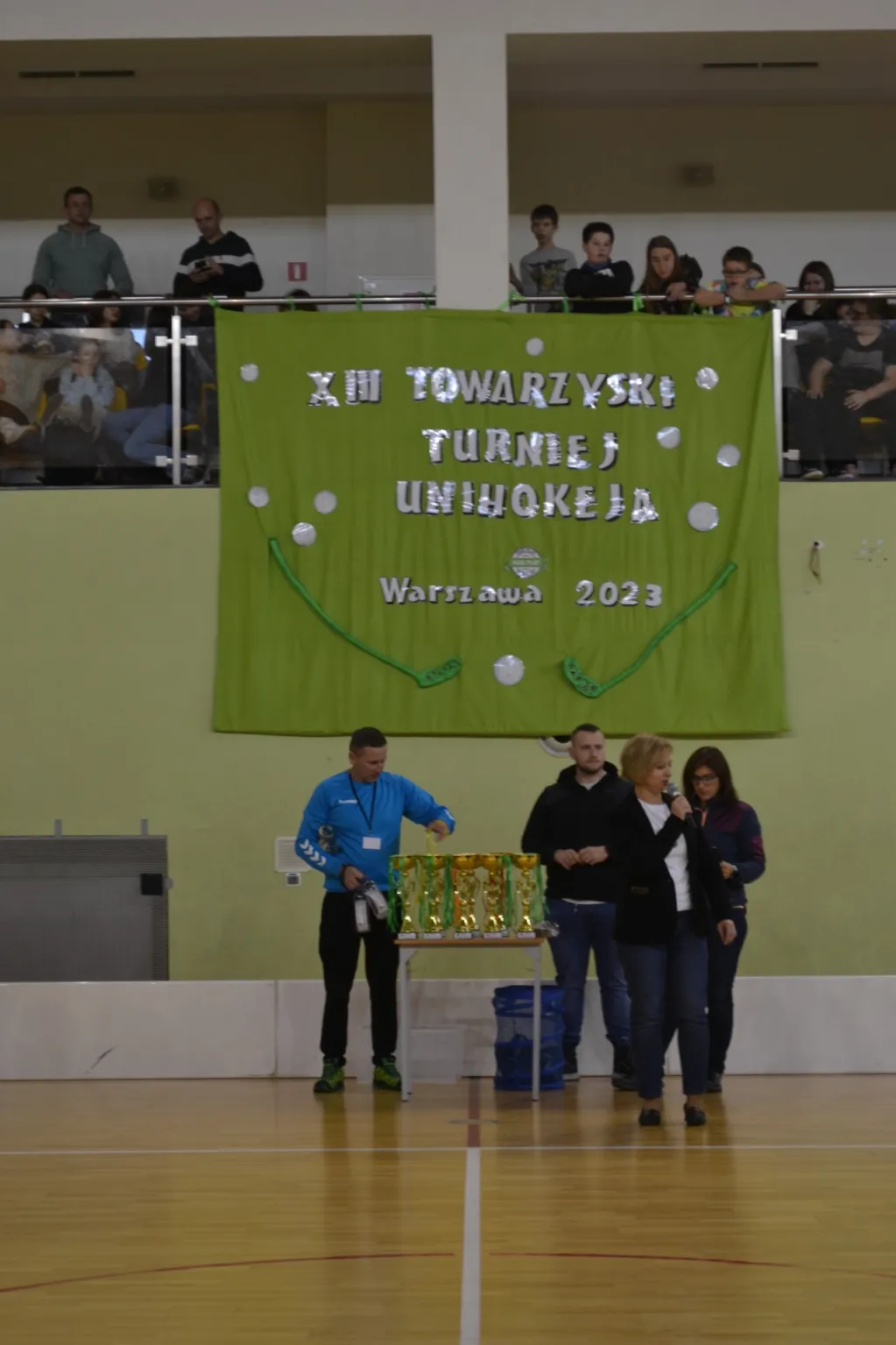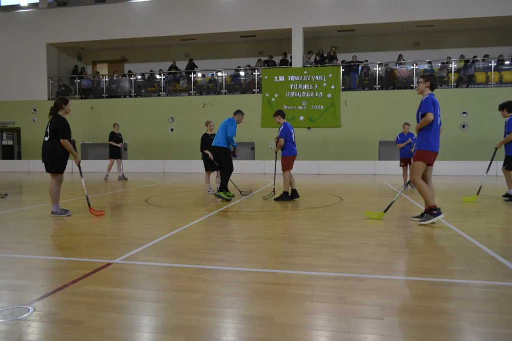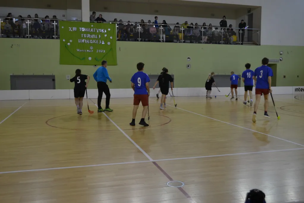 W dniu 29.11.2023 w naszej szkole odbył się XIII Towarzyski Turniej unihokeja. Naszą szkołę reprezentowało sześcioro dziewcząt z klasy 8a i jeden chłopiec z klasy 7b. Nasi zawodnicy rywalizowali z 7 drużynami z Warszawy i Mazowsza. Po bardzo emocjonujących meczach nasza drużyna zajęła zaszczytne 5 miejsce w ostatnim meczu remisując 3-3 z drużyną ze szkoły z Karolkowej. Gratulację dla wszystkich zawodniczek i zawodnika reprezentujących naszą szkołę.