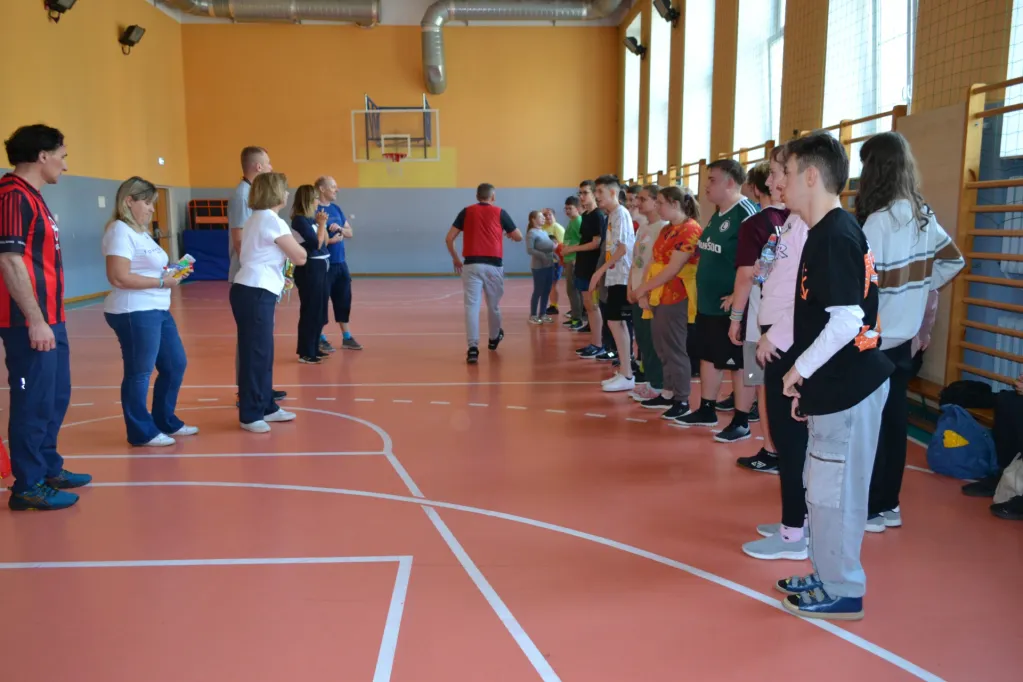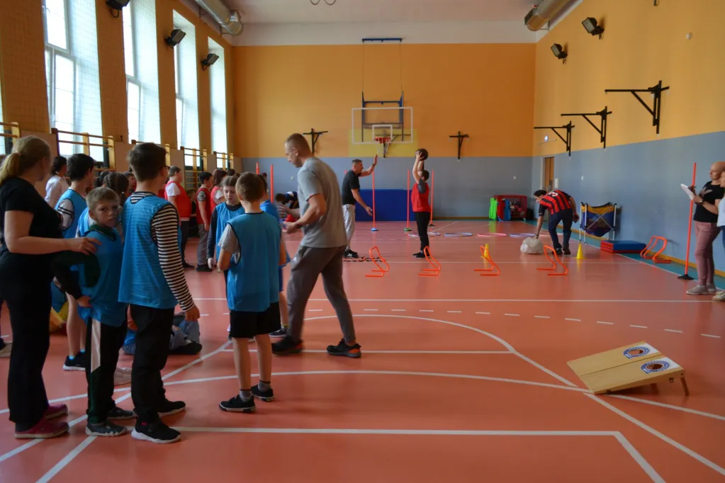 W zawodach wzięli udział wszyscy uczniowie naszej szkoły podzieleni na 3 grupy ćwiczebne. W pierwszej grupie w zajęciach wzięli udział nasi najmłodsi uczniowie w grupie 2 uczniowie średnio zaawansowani w sportowej rywalizacji. W grupie 3 rywalizowali nasi weterani sportowi. Pierwsze dwie grupy wykonywały Tor przeszkód o charakterze koordynacyjnych, szybkościowo-siłowym i poprawiający celność rzutu. Grupa trzecia po mocnej ,, rozgrzewce" rozegrała Turniej koszykówki nauczyciele kontra uczniowie. W Turnieju wzięły udział 3 drużyny jedna w składzie z samymi uczniami i dwie mieszane uczniowie i nauczyciele. Zmagania sportowe zakończyły się zwycięstwami wszystkich drużyn co przełożyło się na sprawiedliwy remis uczniów i nauczycieli.
