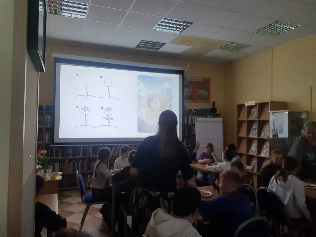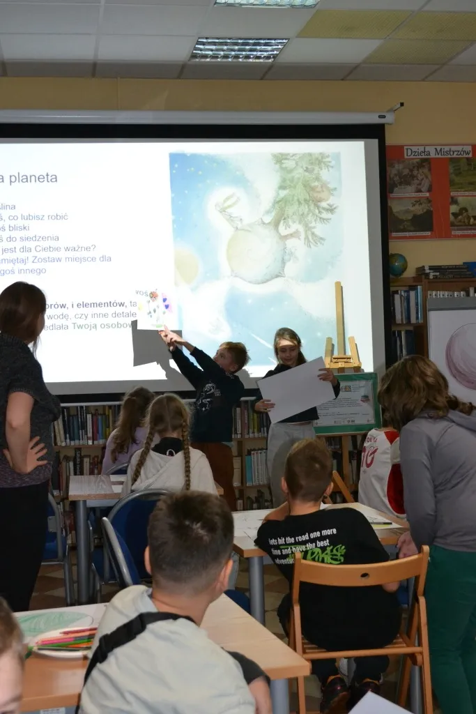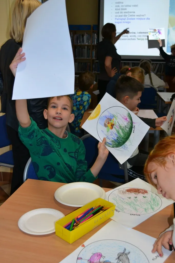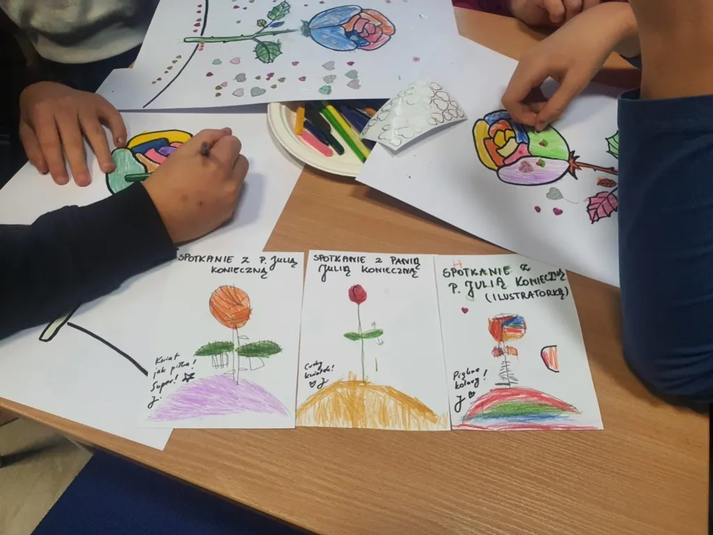 Dzieci z klas: klasy: 2a, 2c, 3a, 4a, 4b, 5b, 6b zapoznały się z twórczością Ilustratorki, dowiedziały się na czym polega specyfika pracy artysty grafika a także same spróbowały swoich sił w tworzeniu ilustracji do tekstu.