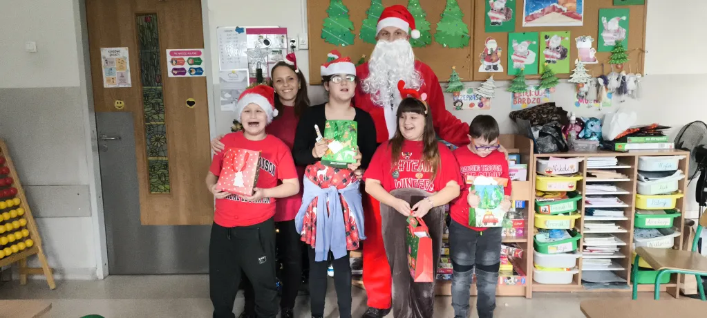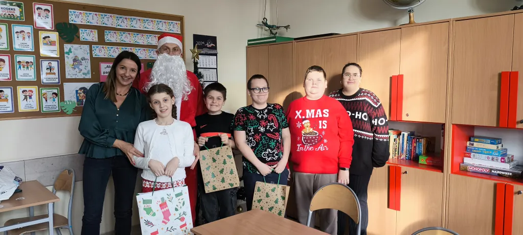 Po filmie każdą klasę odwiedził Święty Mikołaj. Nie zabrakło prezentów, uśmiechów oraz pamiątkowych zdjęć, które na długo zachowają wspomnienia z tego dnia.