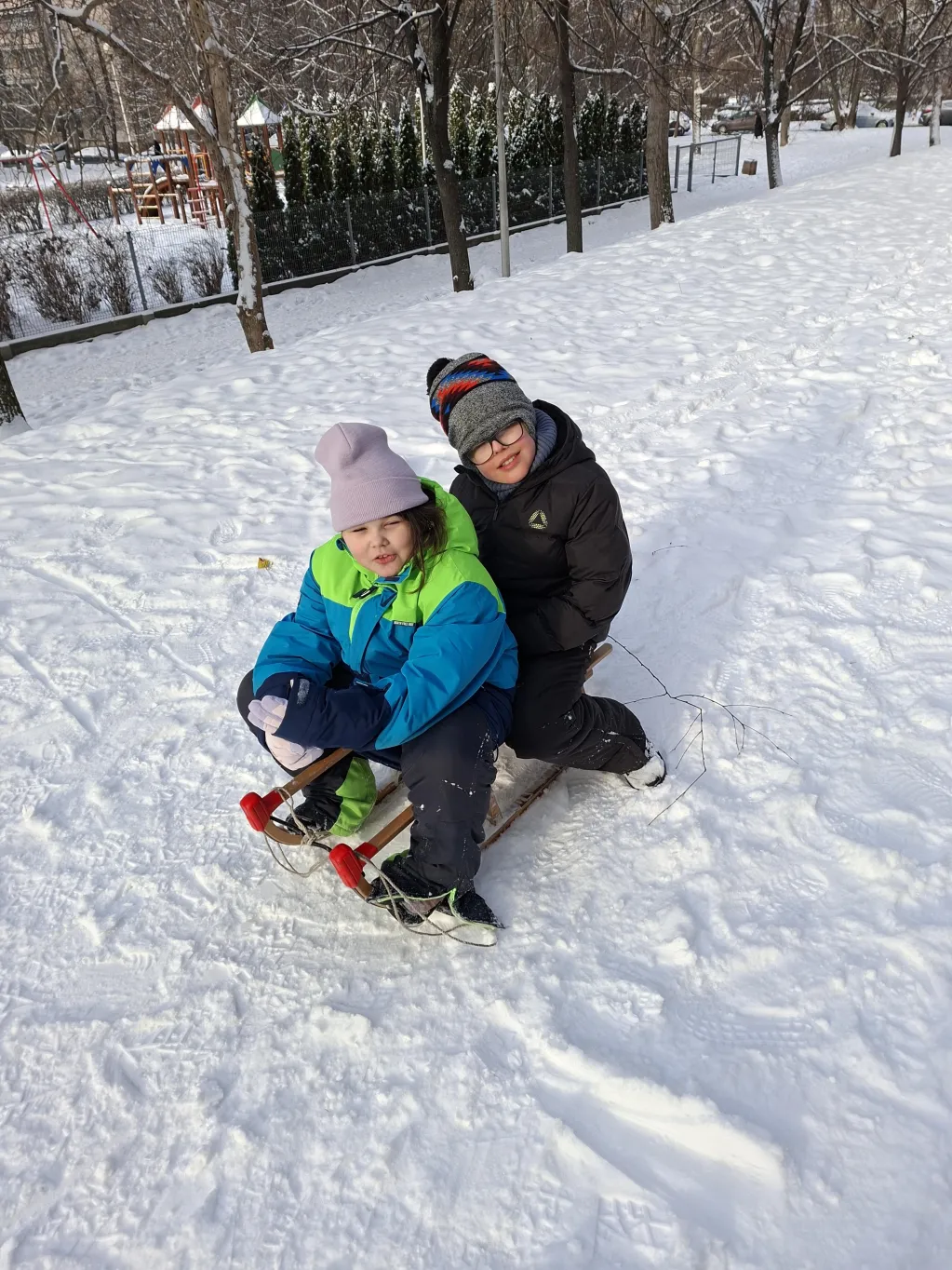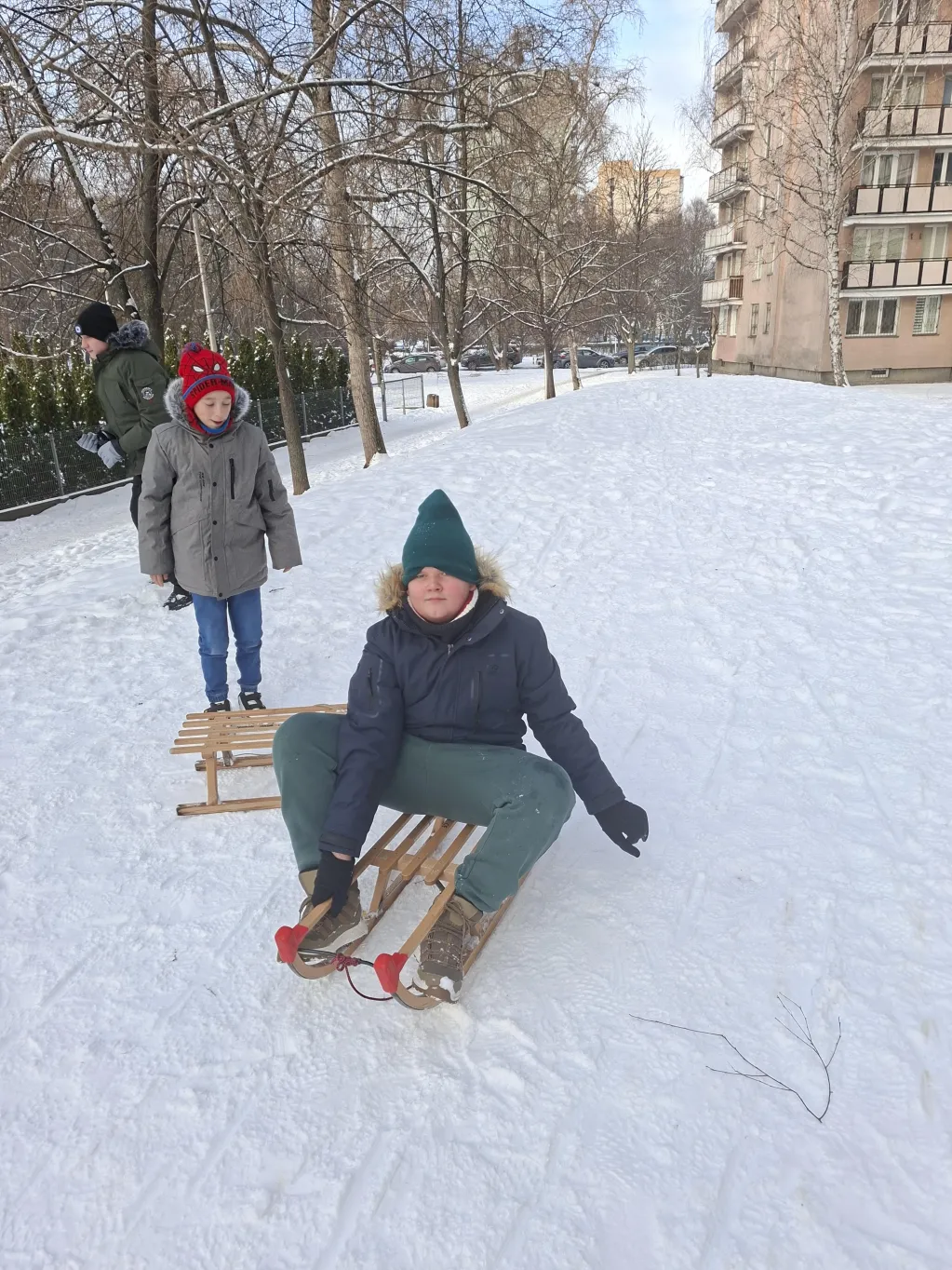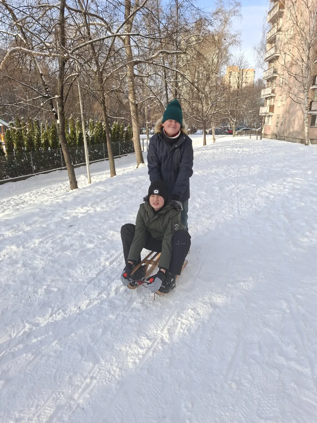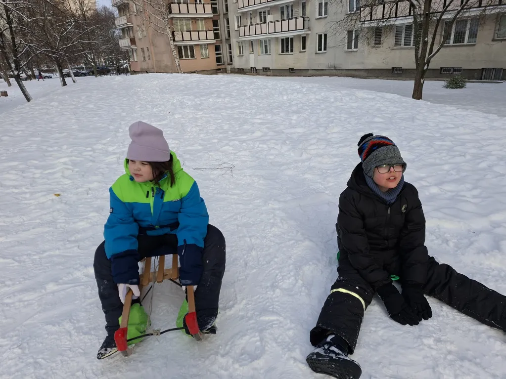 W tygodniu poprzedzający ferie nasi uczniowie trenują bezpieczną jazdę na sankach. Będzie jak znalazł na zapowiadający się śnieżne ferie.
