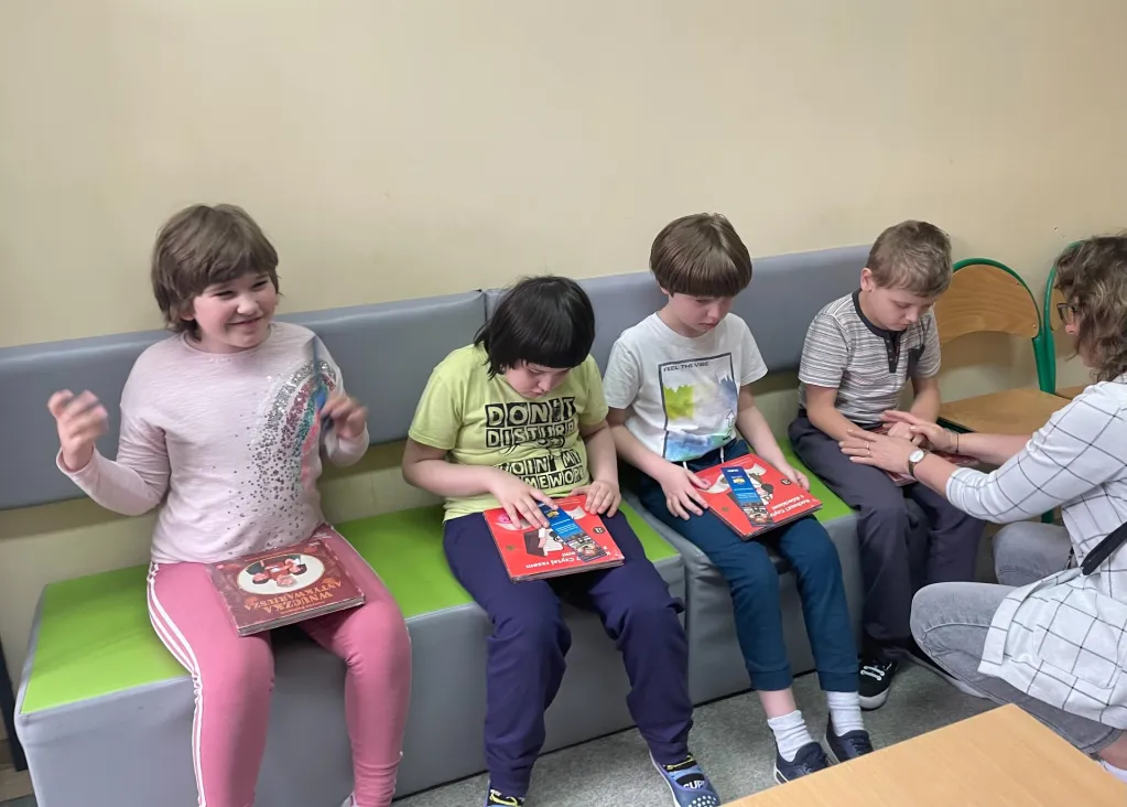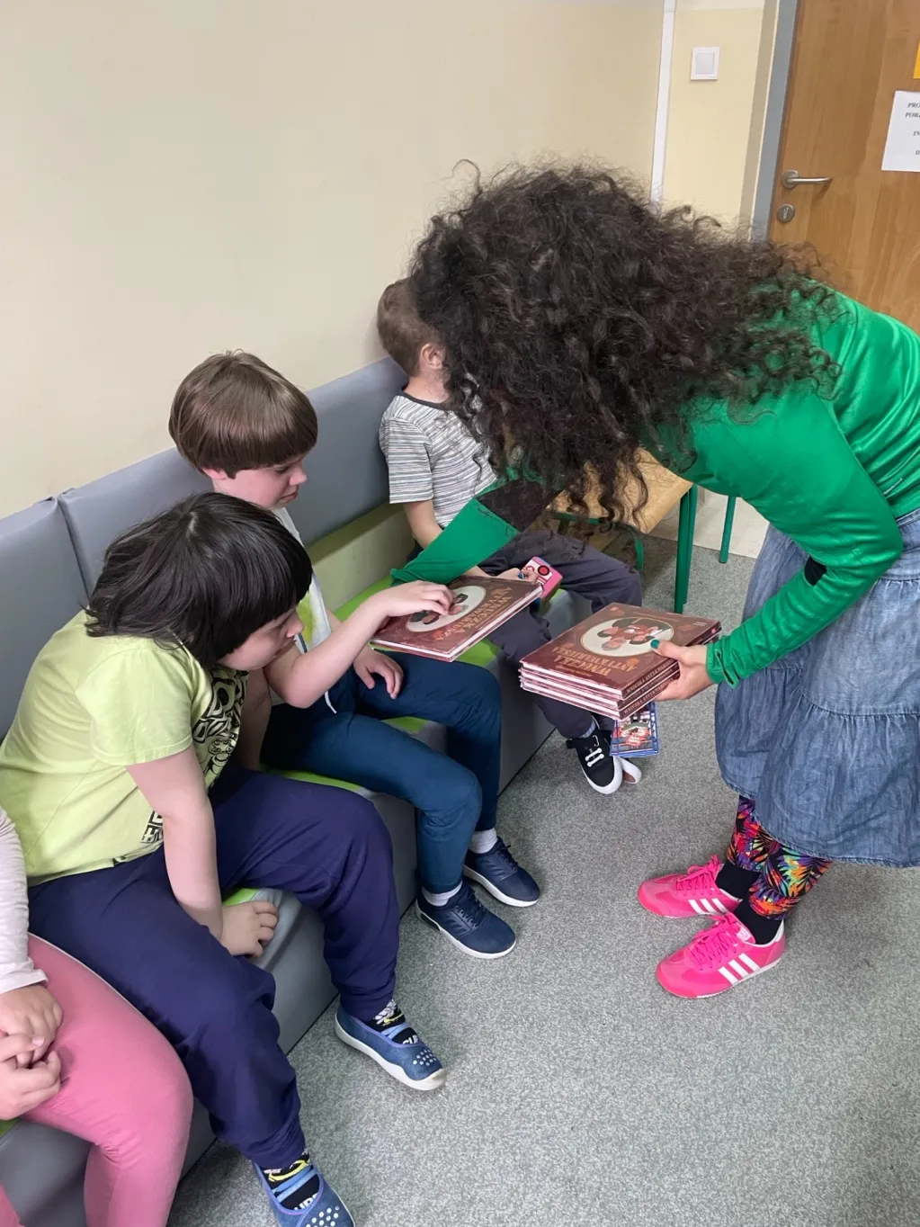 Podczas lekcji bibliotecznej dzieci zapoznały się z: regulaminem bibliotecznym, zasadami poszanowania książki, rozmieszczeniem księgozbioru w bibliotece, oraz dowiedziały się, jak przyjemnie można spędzać czas w bibliotece.