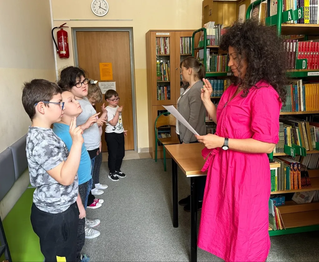 W drugim tygodniu kwietnia 2025 r. w bibliotece szkolnej odbyły się ceremonie Pasowania na Czytelnika uczniów klas pierwszych: 1a i 1b.