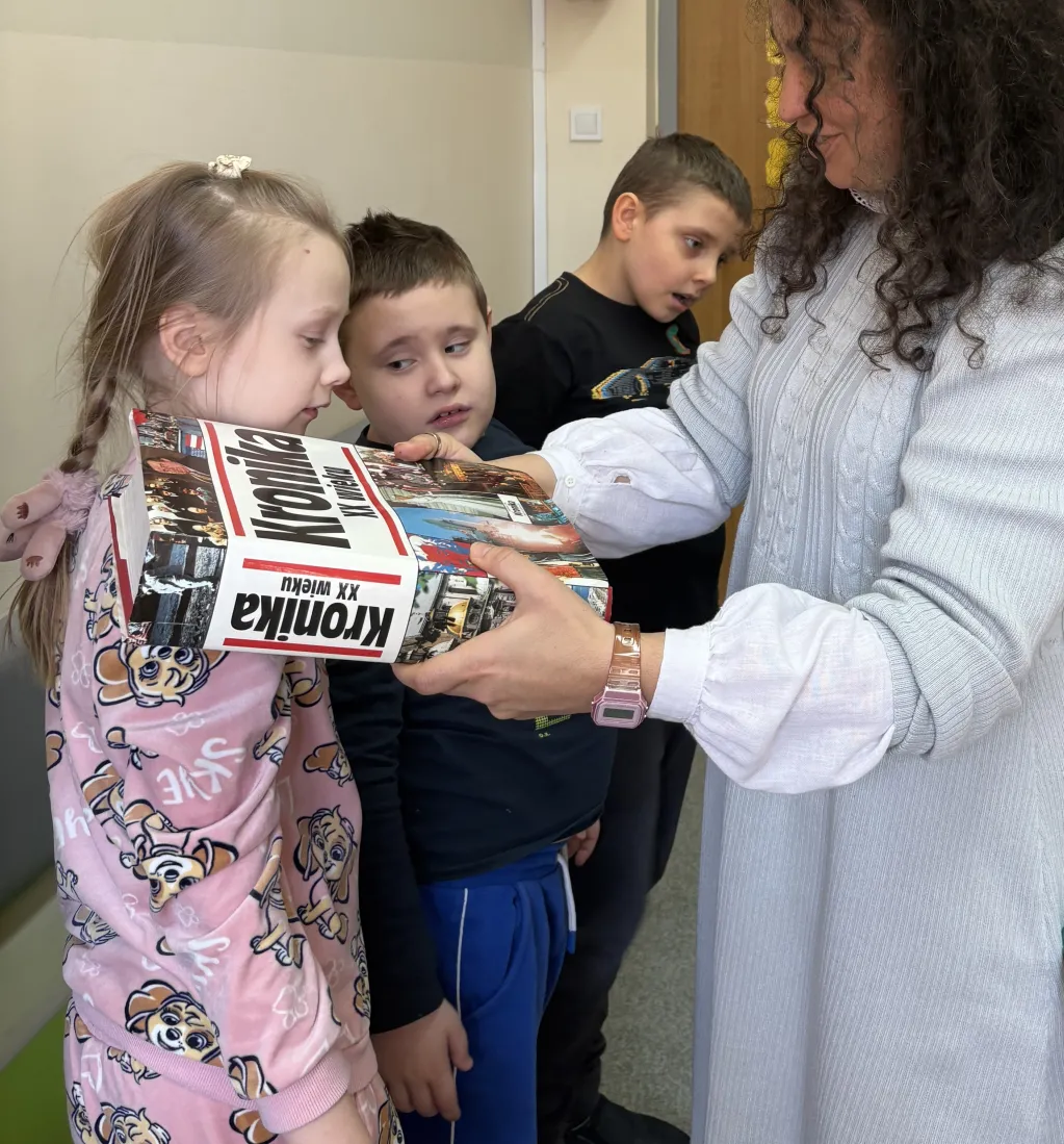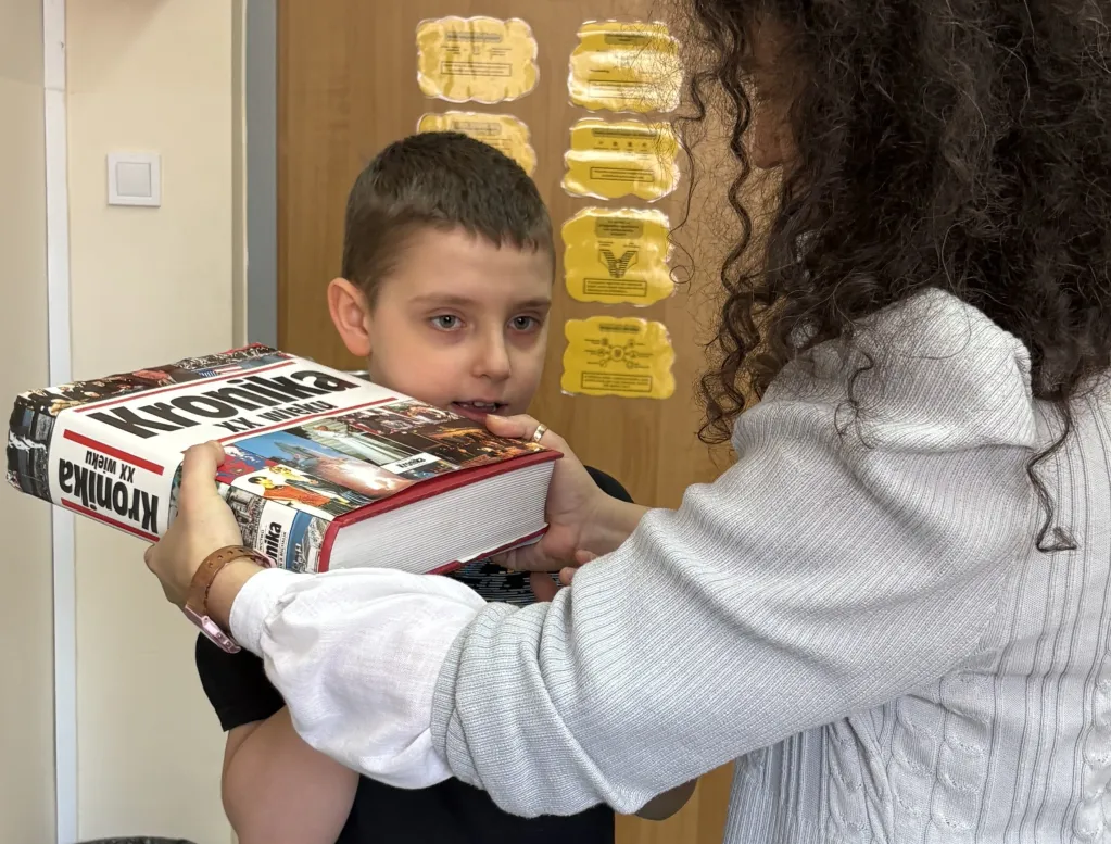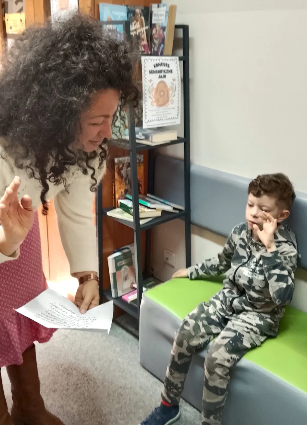 Po pasowaniu dzieci otrzymują upominki, w postaci książek oraz naklejek z logo biblioteki.