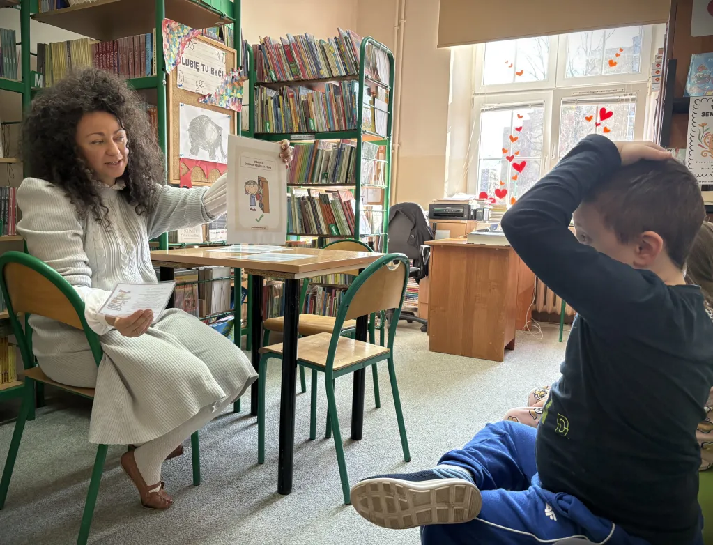 Pierwszoklasiści zapoznają się z biblioteką: poznają jej układ i funkcje, zapoznają się z regulaminem biblioteki oraz z zasadami poszanowania książek. Następnie ćwiczą, jak wypożyczać i zwracać książki.