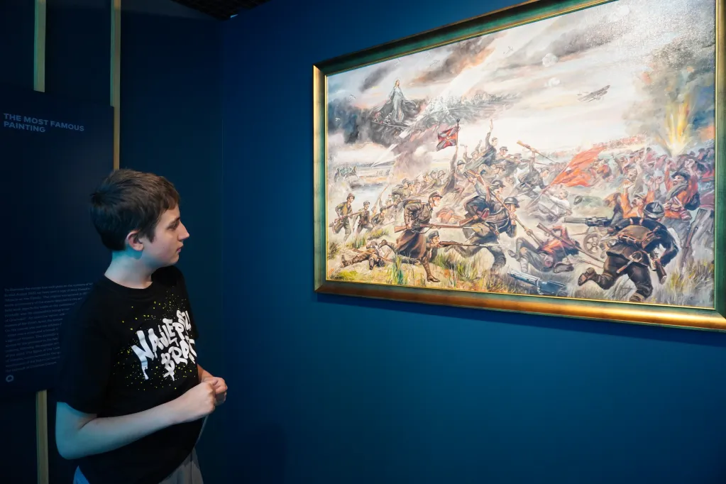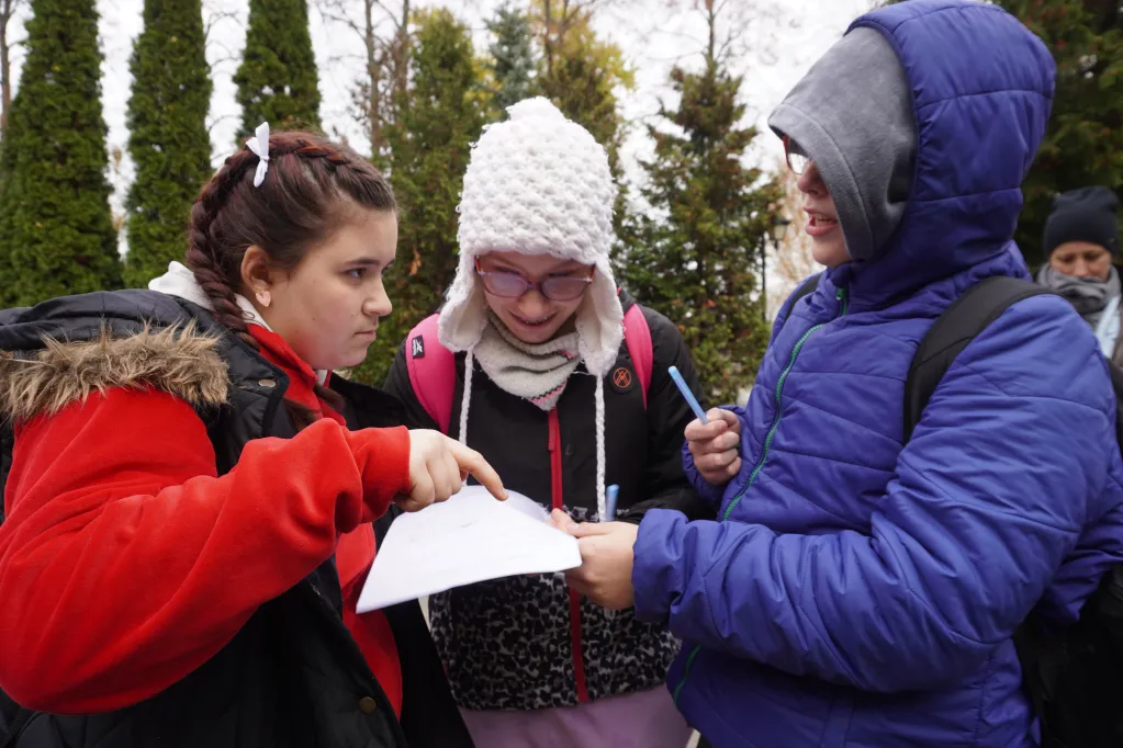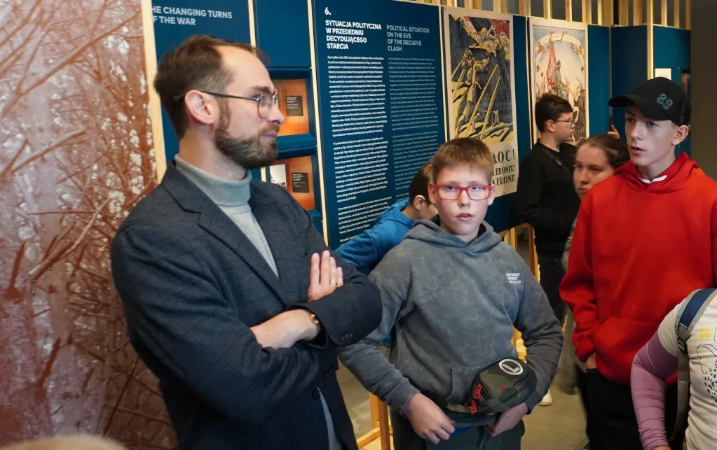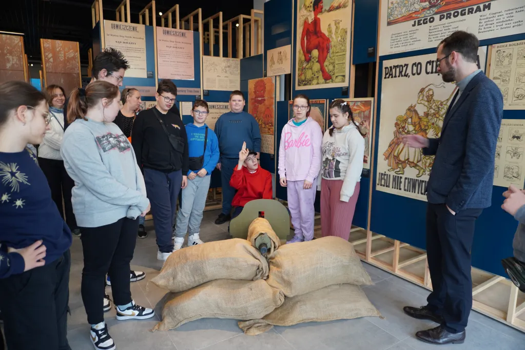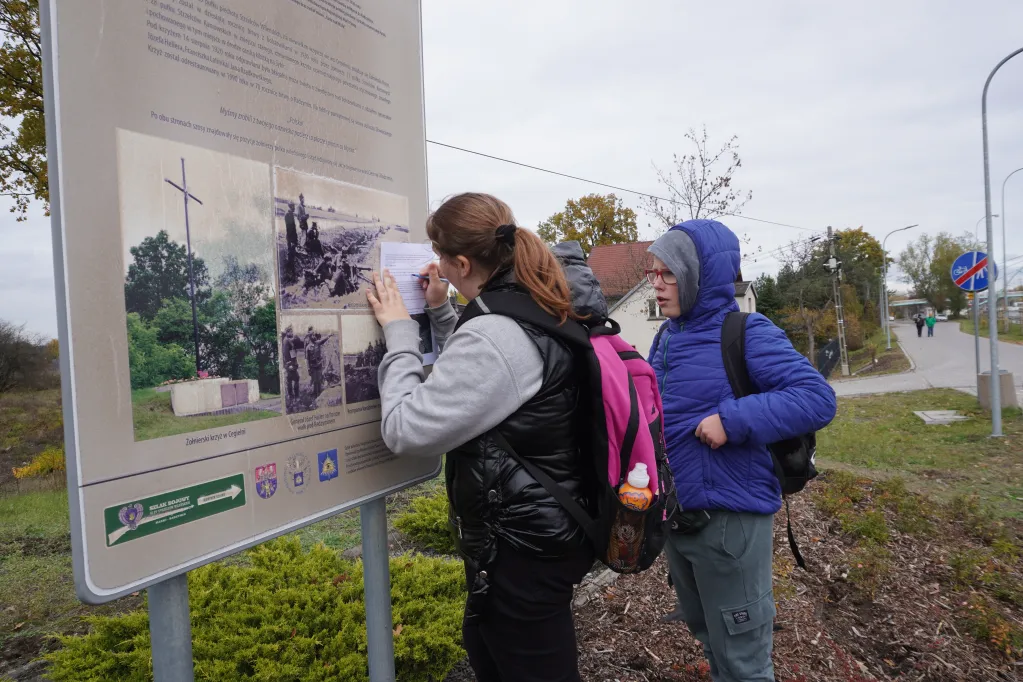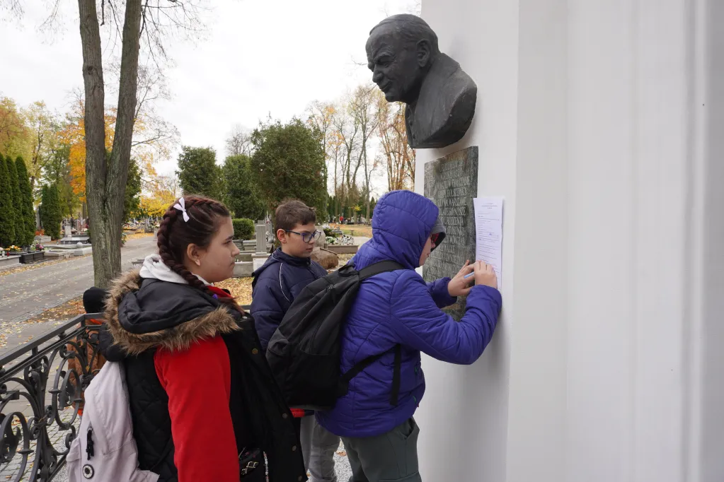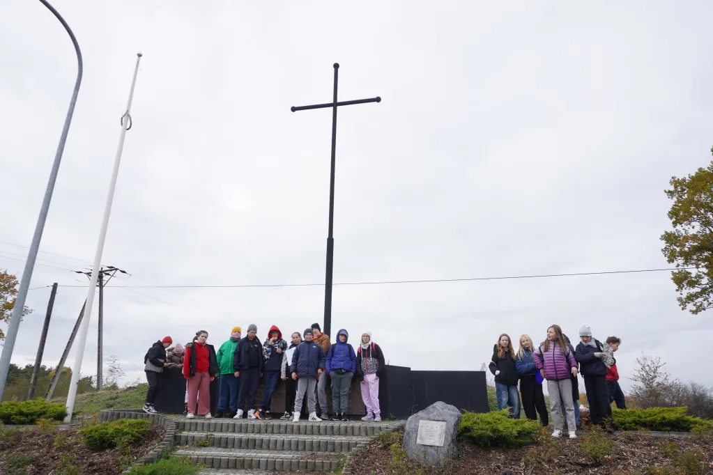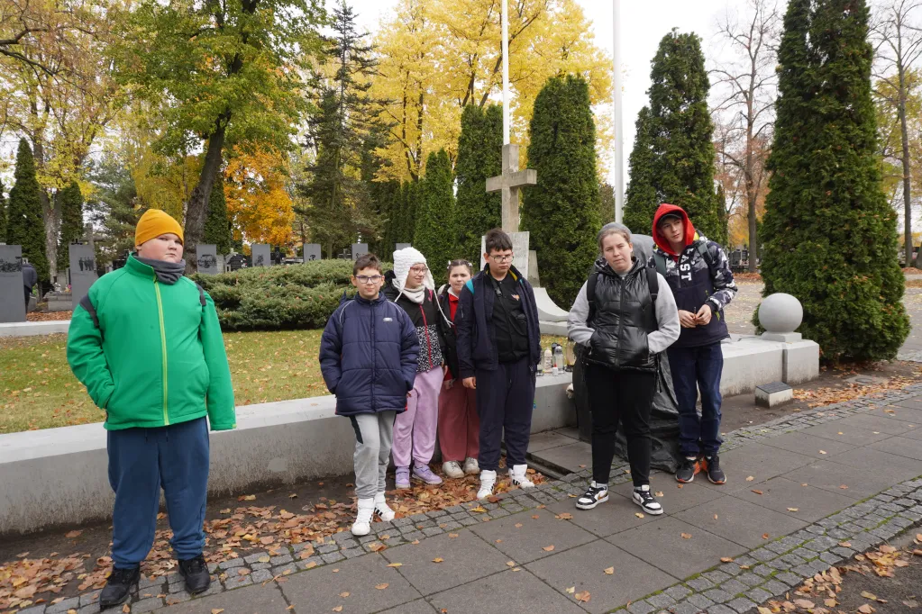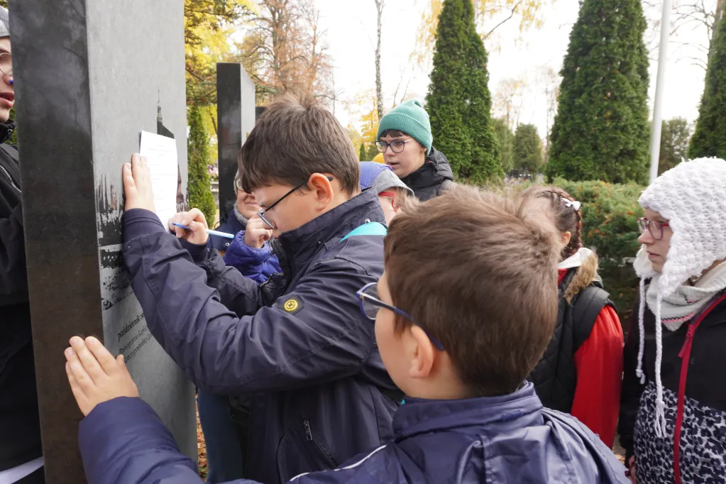 25 października 2025 r. wzięliśmy udział w rajdzie PTTK „Radzymin w czasie Bitwy Warszawskiej 1920”. Było to nasze ostatnie działanie w ramach projektu „105 rocznica Bitwy Warszawskiej 1920”. Najpierw zwiedziliśmy z przewodnikiem Muzeum Bitwy Warszawskiej 1920 r. Dowiedzieliśmy się o początkach wojny z bolszewikami, jej przebiegu, sile i uzbrojeniu Wojska Polskiego, bohaterach tej wojny i oczywiście samej bitwie pod Radzyminem, który w sierpniu 1920 r. kilkakrotnie przechodził z rąk do rąk. Potem poszliśmy z przewodniczką na cmentarz. Wysłuchaliśmy historii cmentarza, informacji o żołnierzach pochowanych w zbiorowych mogiłach, ważnych osobach, które odwiedzały cmentarz i znajdującą się na nim kaplicę. Najważniejszym spośród gości radzymińskiego cmentarza był, oczywiście, papież Jan Paweł II, który ma swój pomnik na cmetarzu.
