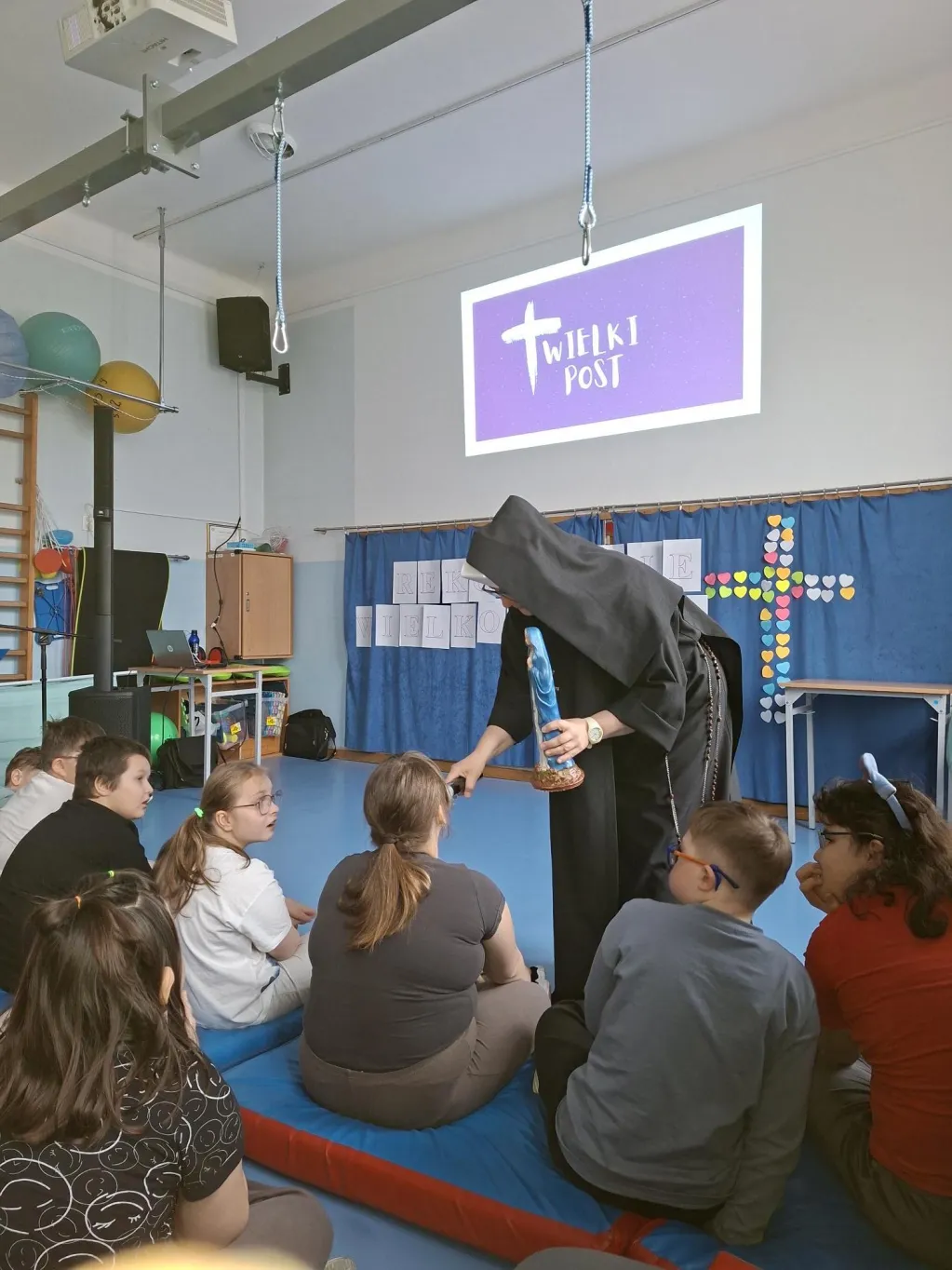 W dniach 25-27.03.2026r. przeżywaliśmy w naszej szkolnej społeczności rekolekcje wielkopostne, nasze duchowe przygotowanie do Świąt Wielkanocnych. Rozpoczęła je s. Marzena katechezą o wydarzeniach Wielkiego Tygodnia, przygotowując również uczniów do spowiedzi św., w czwartek przeżyliśmy Drogę Krzyżową w kościele, którą poprowadzili kapłani naszej parafii. Uczniowie nie tylko czytali rozważania, ale również pokazywali piktogramy i duże obrazy, by treść była zrozumiała dla wszystkich. Piątek był dniem spowiedzi i radosnej Mszy św. Wspólny śpiew prowadziła p. Justyna. Te dni były dla nas wyjątkowe.