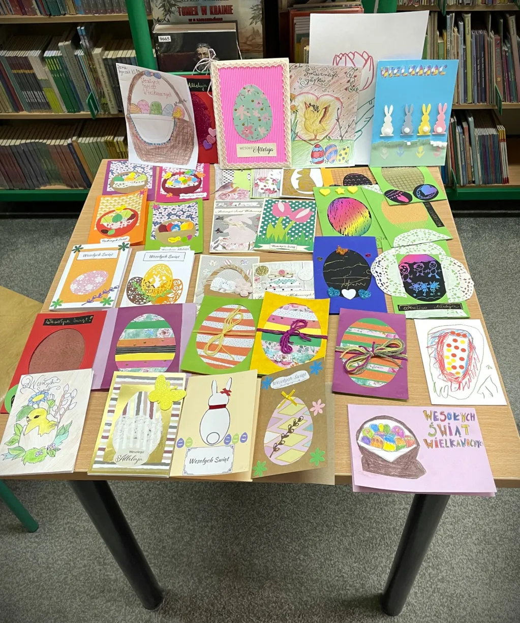 Tuż przed Świętami Wielkanocnymi odbył się konkurs plastyczno-techniczny na Najpiękniejszą Kartkę Wielkanocną w kooperacji biblioteki ze świetlicą szkolną.