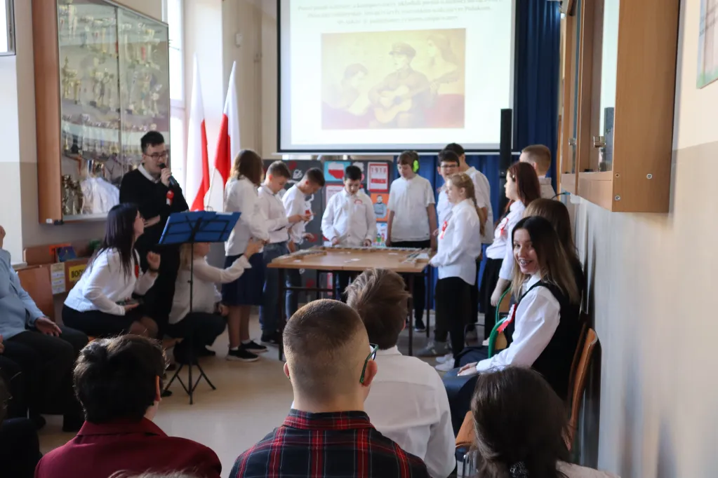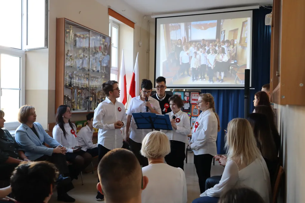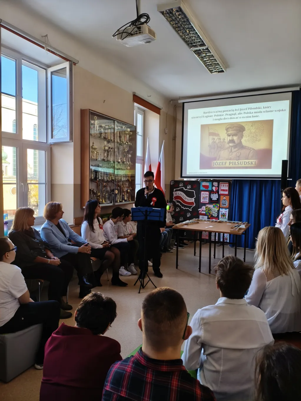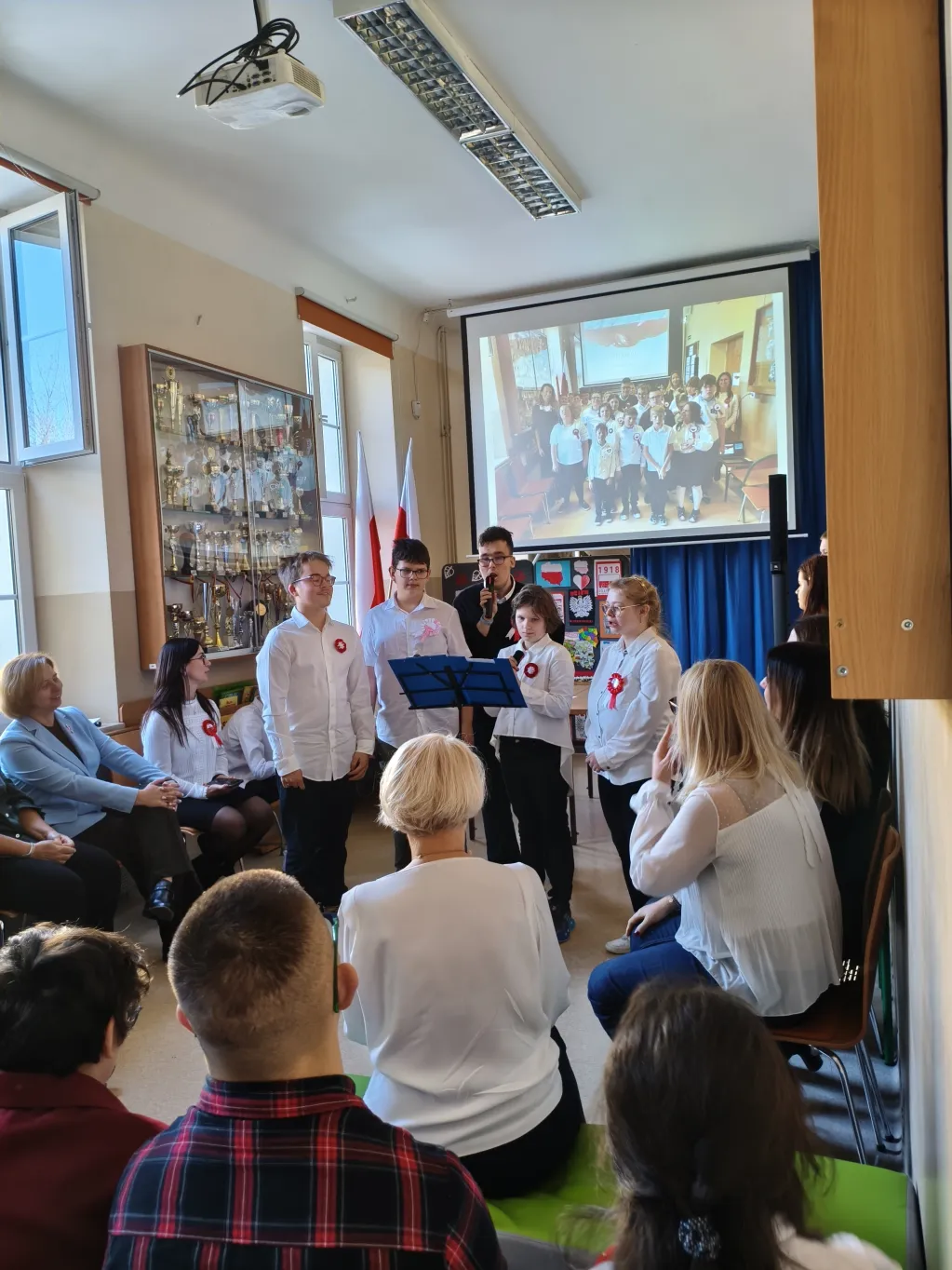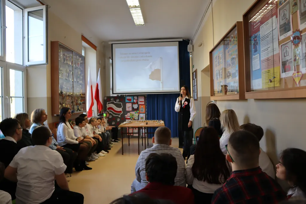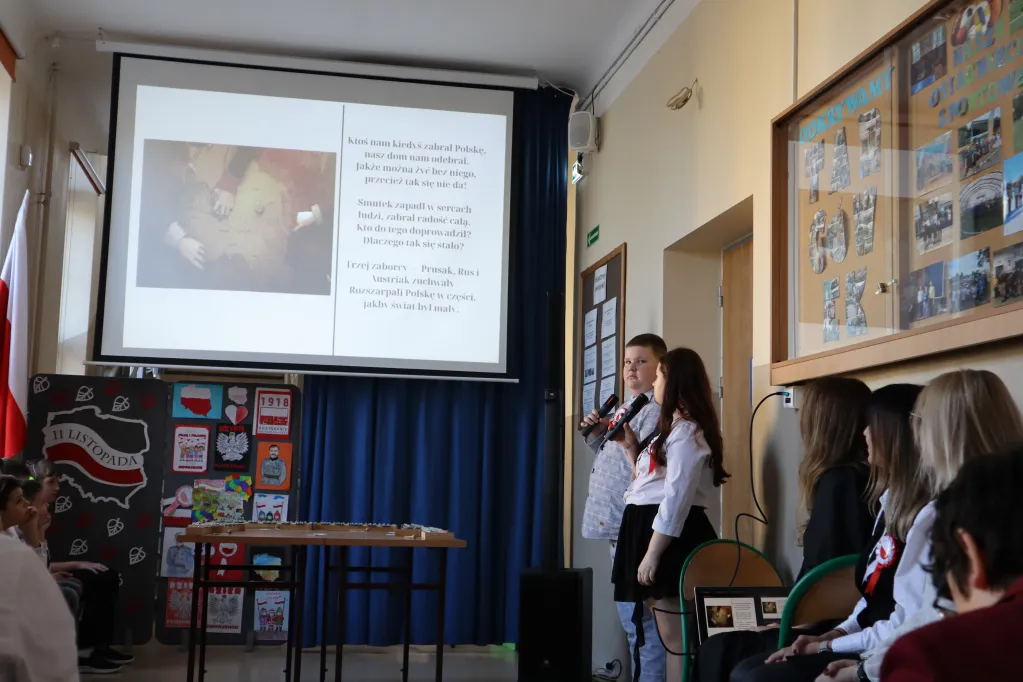 6 listopada 2025 roku w naszej szkole odbył się uroczysty apel upamiętniający Narodowe Święto Niepodległości. Podczas wydarzenia uczniowie przypomnieli sobie najważniejsze zagadnienia z historii naszej ojczyzny, poznając drogę Polaków do odzyskania wolności. Uroczystość wzbogaciły wspólnie śpiewane pieśni żołnierskie, które podkreśliły podniosły i patriotyczny charakter spotkania. Spotkanie stało się wartościową lekcją historii oraz okazją do wspólnego świętowania. Dzień później nasza szkoła przystąpiła do akcji „ Szkoła do hymnu”.