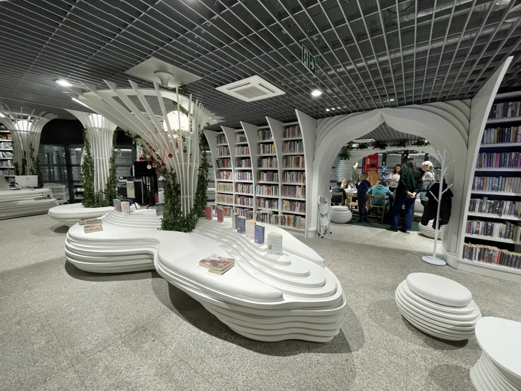 Specjalnie zaprojektowana architektura Metroteki, przypominająca wnętrze wieloryba, to przestrzeń sprzyjająca relaksowi, pracy i zanurzeniu się w lekturze.