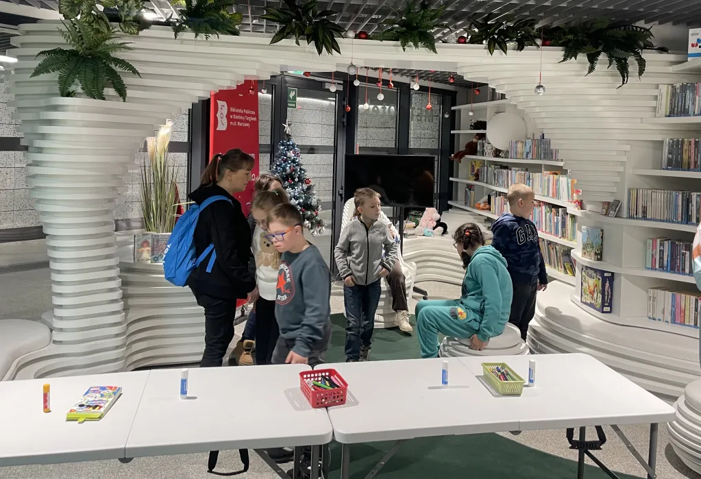 Podczas spotkania nasi uczniowie nie tylko zwiedzili nietypową bibliotekę, ale również wzięli udział w warsztatach o tematyce świątecznej.