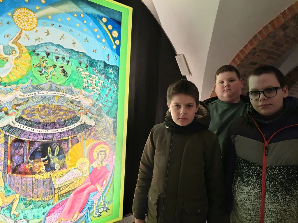 Przeżywamy czas przygotowania do Świąt Bożego Narodzenia. Uczniowie klas 3a, 4a i 6b obejrzeli wystawę "Boże Narodzenie 20 obrazów".