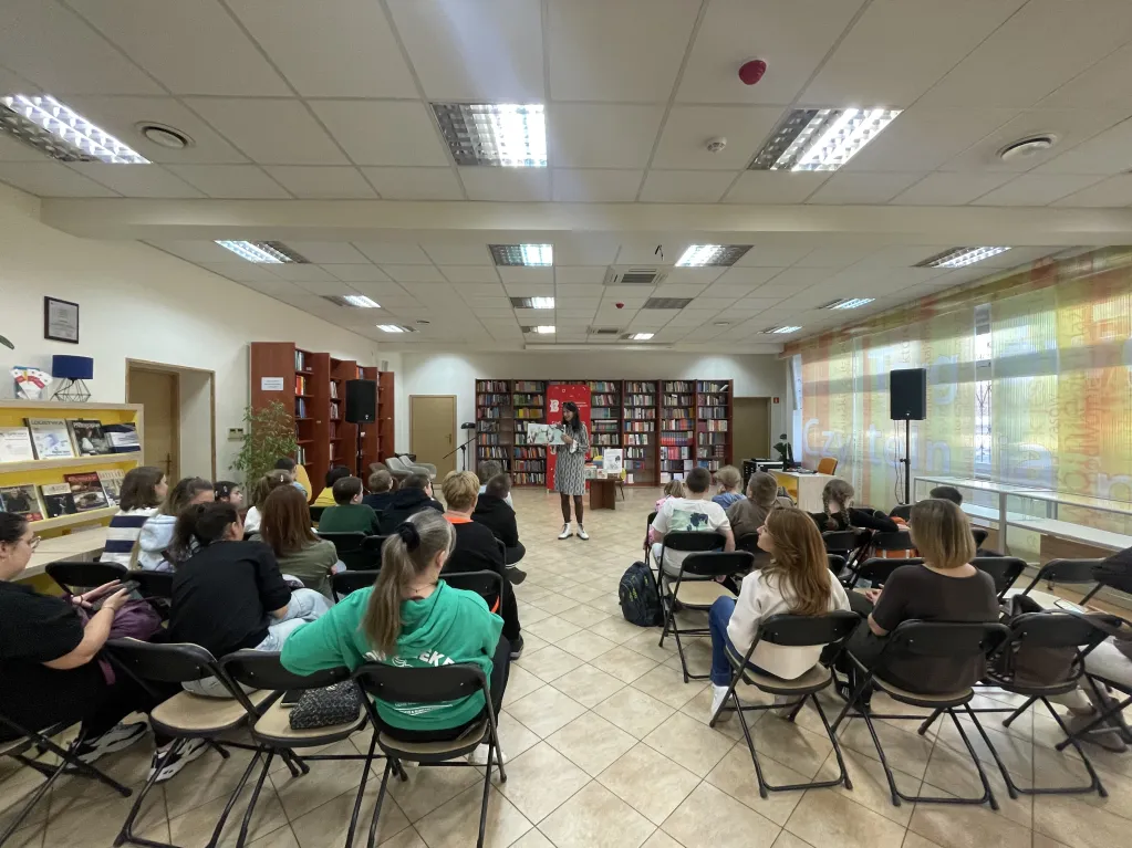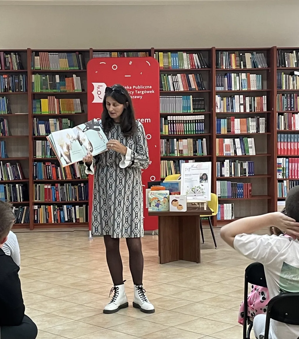 14 listopada wszystkie klasy drugie, trzecie i czwarte zostały zaproszone do Biblioteki Publicznej w dzielnicy Targówek na spotkanie autorskie z Małgorzatą Swędrowską - pedagożką, edukatorką, promotorka czytelnictwa, trenerką nauczycieli, bibliotekarzy, studentów i rodziców, a także autorką książek dla dzieci i licznych publikacji dla nauczycieli i bibliotekarzy.