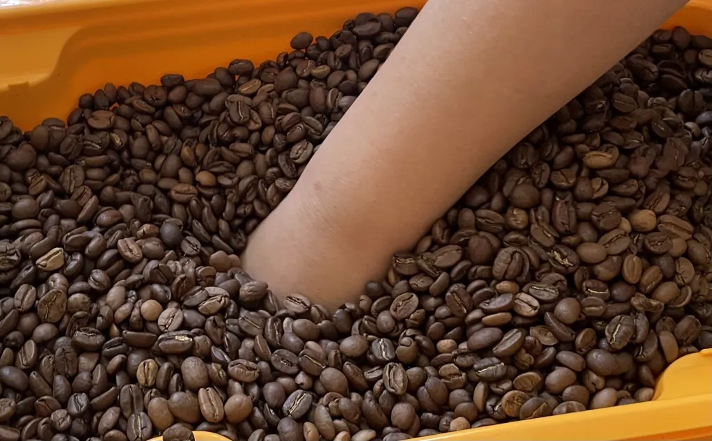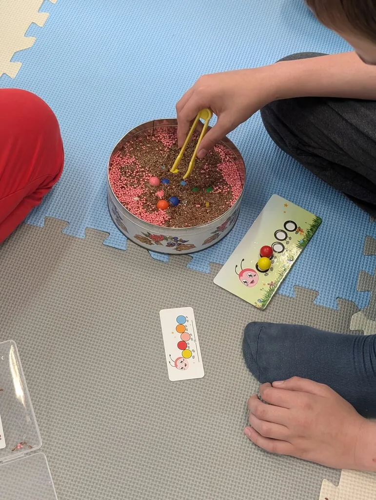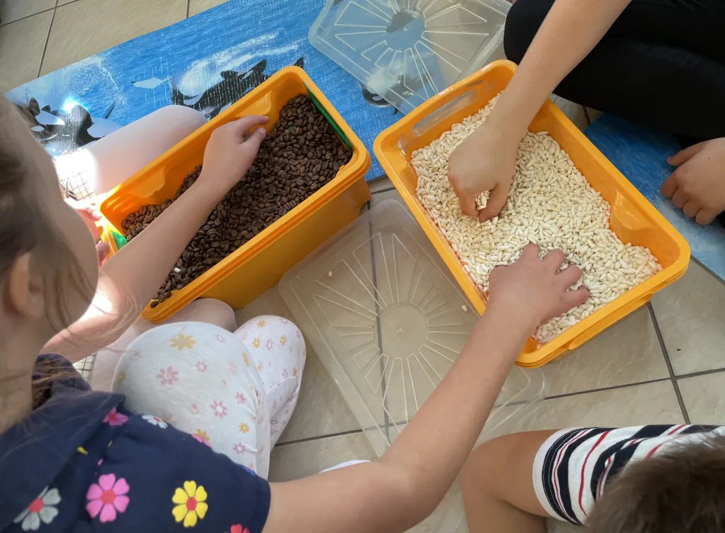 Podczas warsztatów dzieci mogły doświadczyć świata różnymi zmysłami: dotykać różnych faktur, poczuć delikatność piórka, zanurzyć ręce w zimnych kulkach hydrożelowych czy w twardych ziarnach kawy, powąchać lawendę, wanilię, cytrynę; ugniatać, masować, skakać, czy czołgać się w tęczowym tunelu; posłuchać czytanej książki - jednym słowem - SENSORYKA na całego!