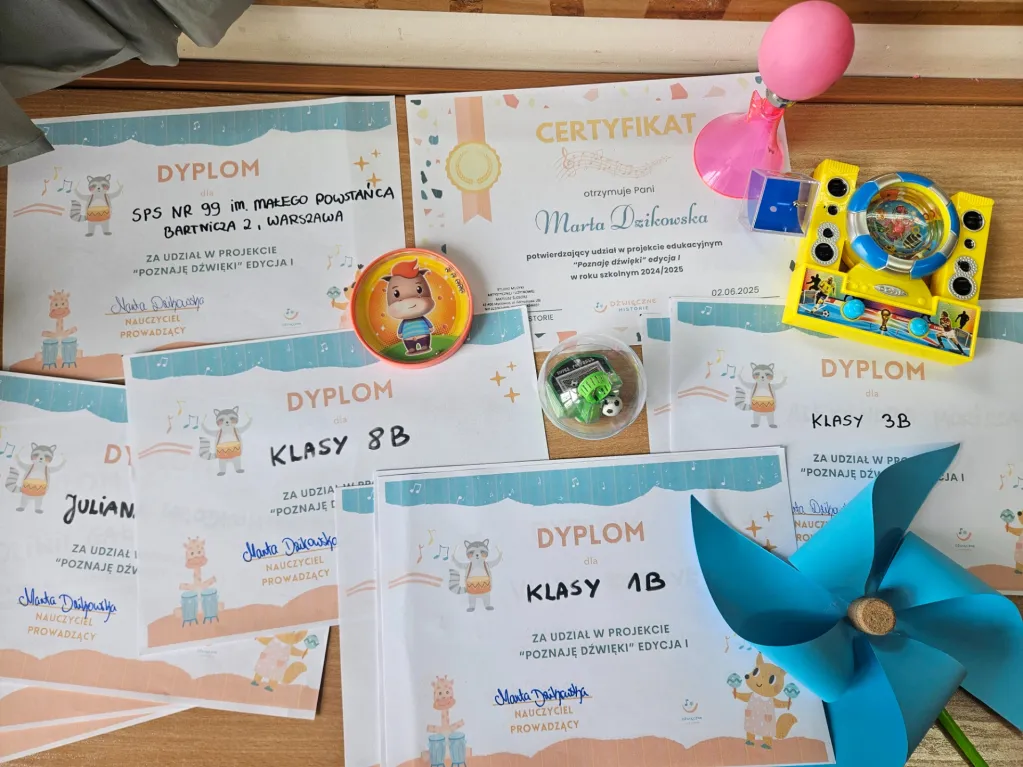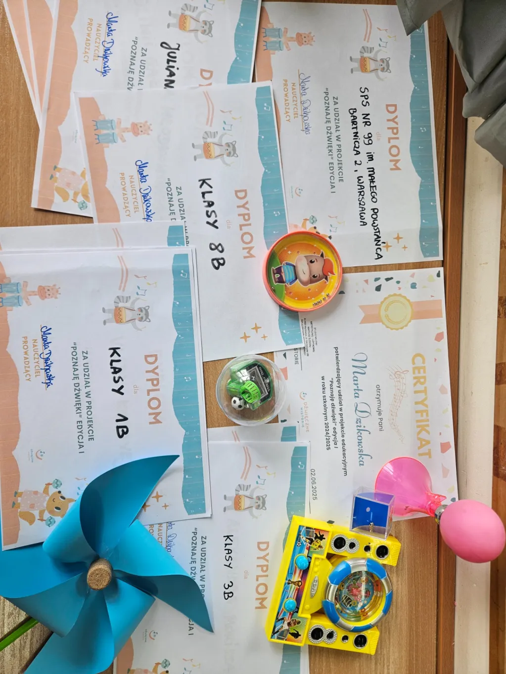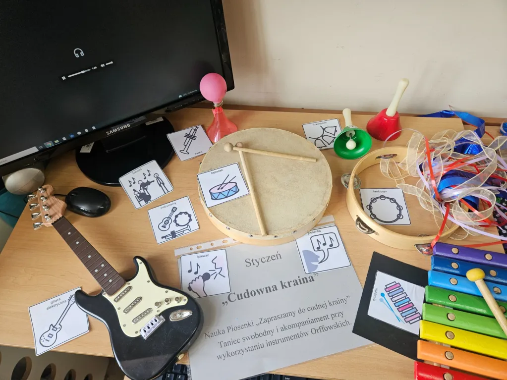 W bieżącym roku szkolnym logopedka Marta Dzikowska wdrożyła pierwszą edycje ogólnopolskiego projektu edukacyjnego pt.: „Poznaję dźwięki – instrumenty strunowe” organizowanego przez edukatorów z „Dźwięcznych historii”. Innowację, zgodnie z założeniem zrealizowała w okresie 2.09.2024-31.05.2025 rok.