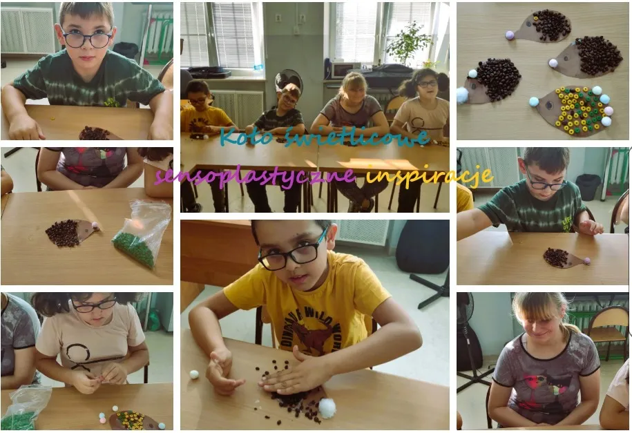 Sensoplastyczne Inspiracje. Program zajęć plastycznych z elementami sensoplastyki, przeznaczonych dla uczniów klas 1-6. Zajęcia mają za cel wspieranie rozwoju uczniów poprzez działania z zakresu stymulacji sensorycznej w oparciu o edukację plastyczną. Podczas zajęć wspieramy postawę kreatywnego i twórczego działania uczniów, którzy samodzielnie tworząc pracę plastyczną, wykorzystują własną inwencję twórczą. Zajęcia są naturalnym sposobem odkrywania własnych predyspozycji i uzdolnień uczniów i ich samodzielnego myślenia.